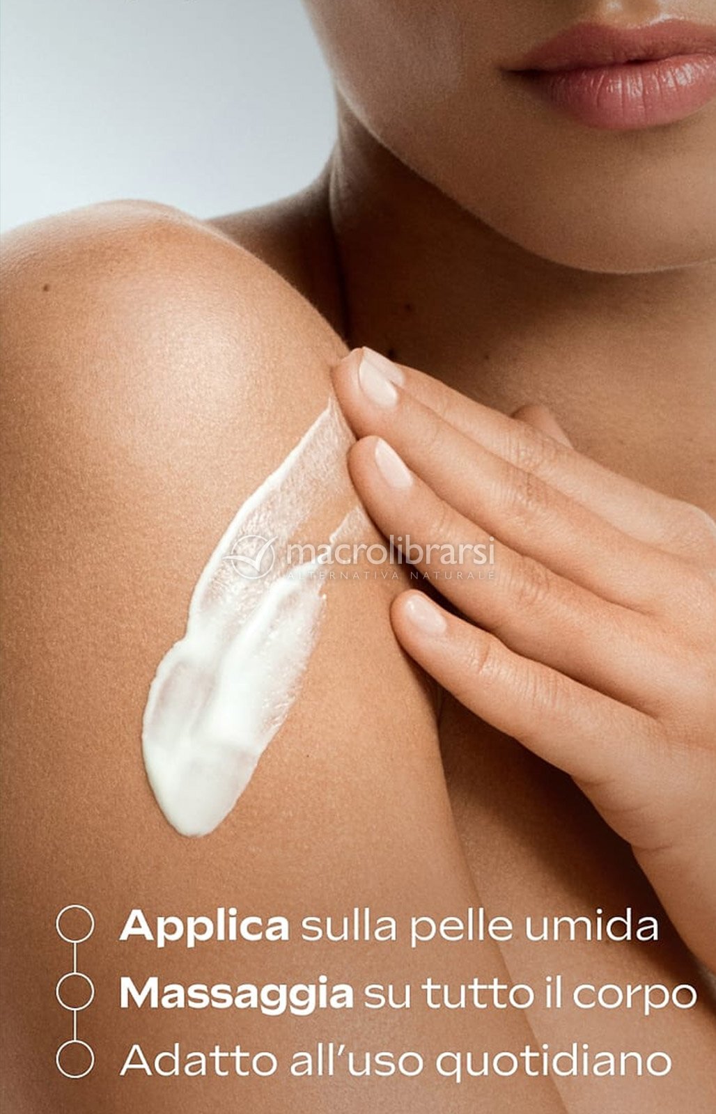 Applicare quotidianamente sulla pelle fino a completo assorbimento, ideale dopo la doccia o il bagno.