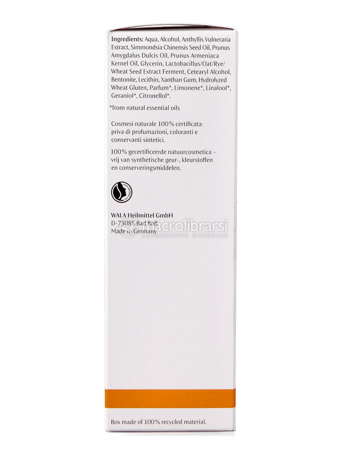 | Disclaimer | I dati riportati sulla confezione del prodotto (INCI, consigli di utilizzo, data di scadenza, certificazioni, etc) possono variare sulla base dell'aggiornamento delle formulazioni da parte dei produttori, dell'arrivo di un nuovo lotto e dell'adeguamento alle norme di legge. Vi preghiamo pertanto di fare sempre riferimento alle informazioni presenti in etichetta prima di utilizzare il prodotto acquistato. Le immagini riportate hanno uno scopo puramente indicativo e sono soggette a variazioni da parte dei produttori. |