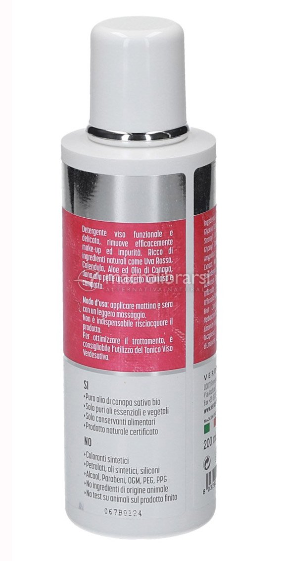 Uso da oltre 15 anni i prodotti della Verdesativa. Il latte detergente Canapa e Uva Rossa non manca mai tra i miei prodotti di cura quotidiana. Molto pratico, ne basta pochissimo, lo utilizzo per detergere il viso mattina e sera, si rimuove benissimo con la sola acqua.