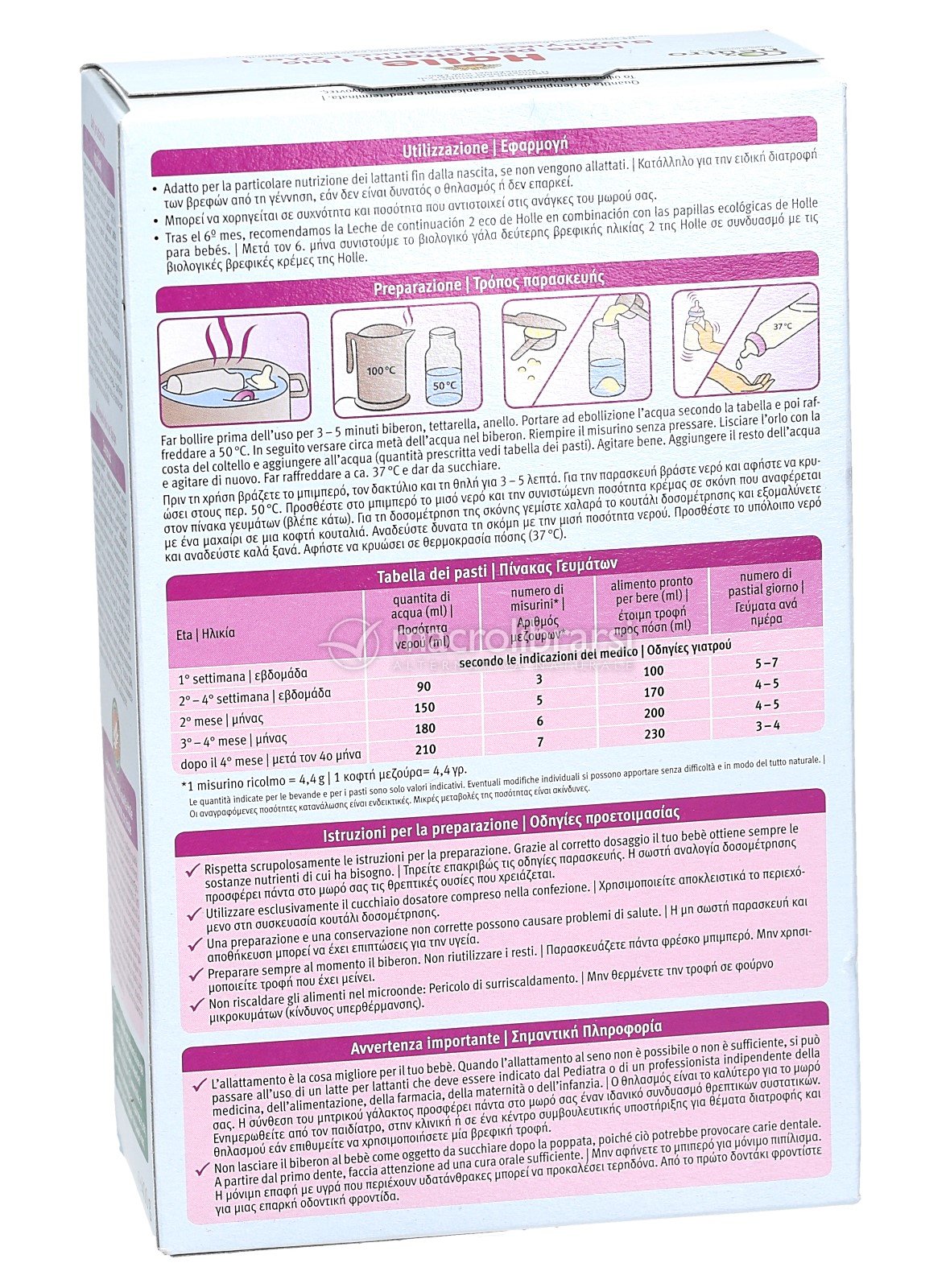 Purtroppo non ho potuto allattare a lungo al seno...e dopo vari tentativi con altri latti (tutti miseramente falliti) ho provato l'Holle..ed il mio bimbo si trova benissimo. Ormai lo mangia da 2 mesi e gli piace molto. Inoltre è biologico,e sicuramente è un altro punto a favore di questa marca. La confezione è composta dalla scatola di cartone esterna, al cui interno ci sono il misurino ed il latte in polvere,contenuto in un sacchetto apposito.