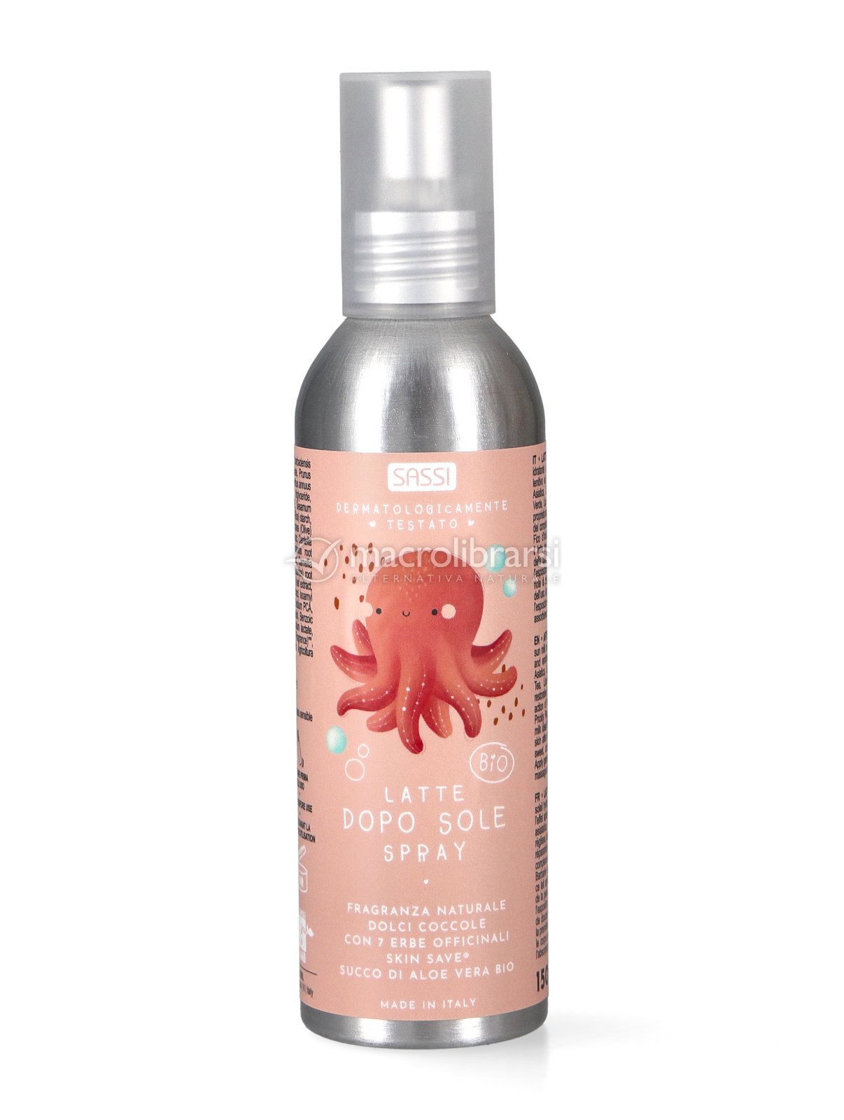 Il Latte Doposole Bio Spray di Sassi è un trattamento riparatore specifico per neonati e bambini, formulato per idratare profondamente e calmare i rossori dopo l'esposizione al sole, grazie a un cuore puro di Aloe Vera e un complesso botanico d'eccellenza.