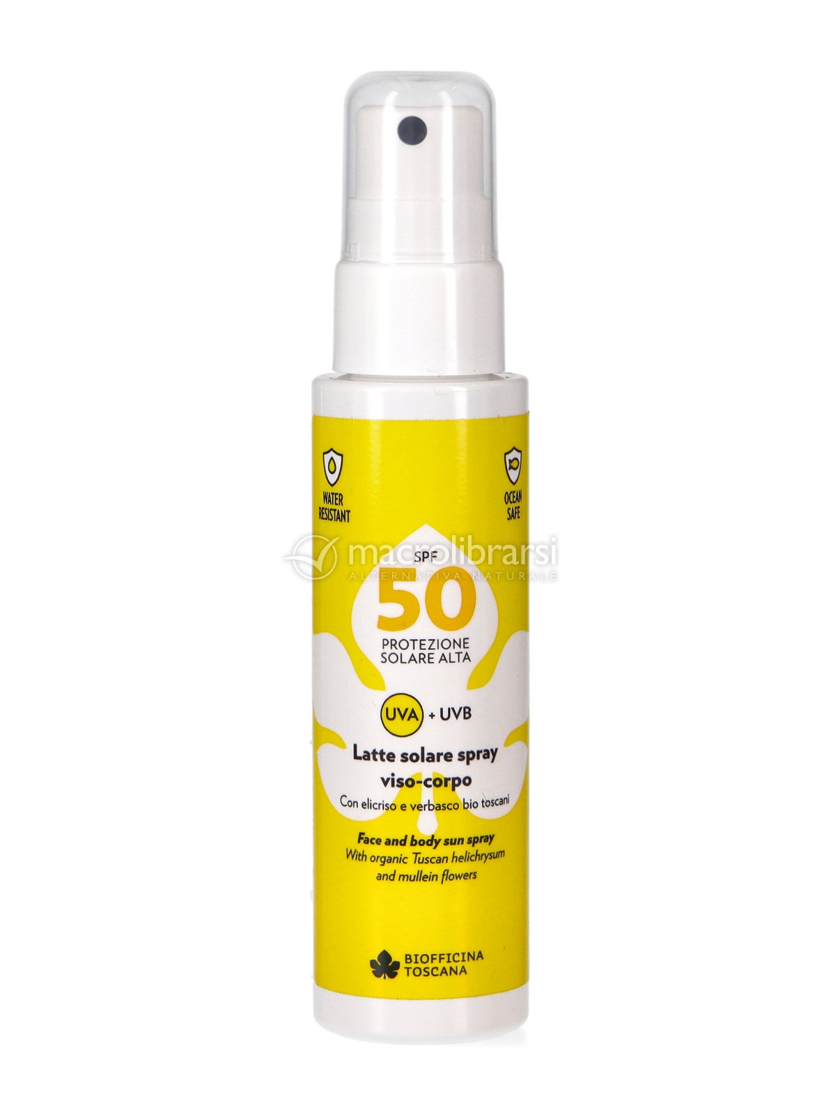 Formulato con filtri di nuova generazione rispettosi dell’ambiente marino e delle barriere coralline secondo il protocollo delle Hawaii, il Latte Solare Spray SPF 30 di Biofficina Toscana garantisce una protezione dai raggi UVA e UVB grazie al suo fattore di protezione SPF 50.