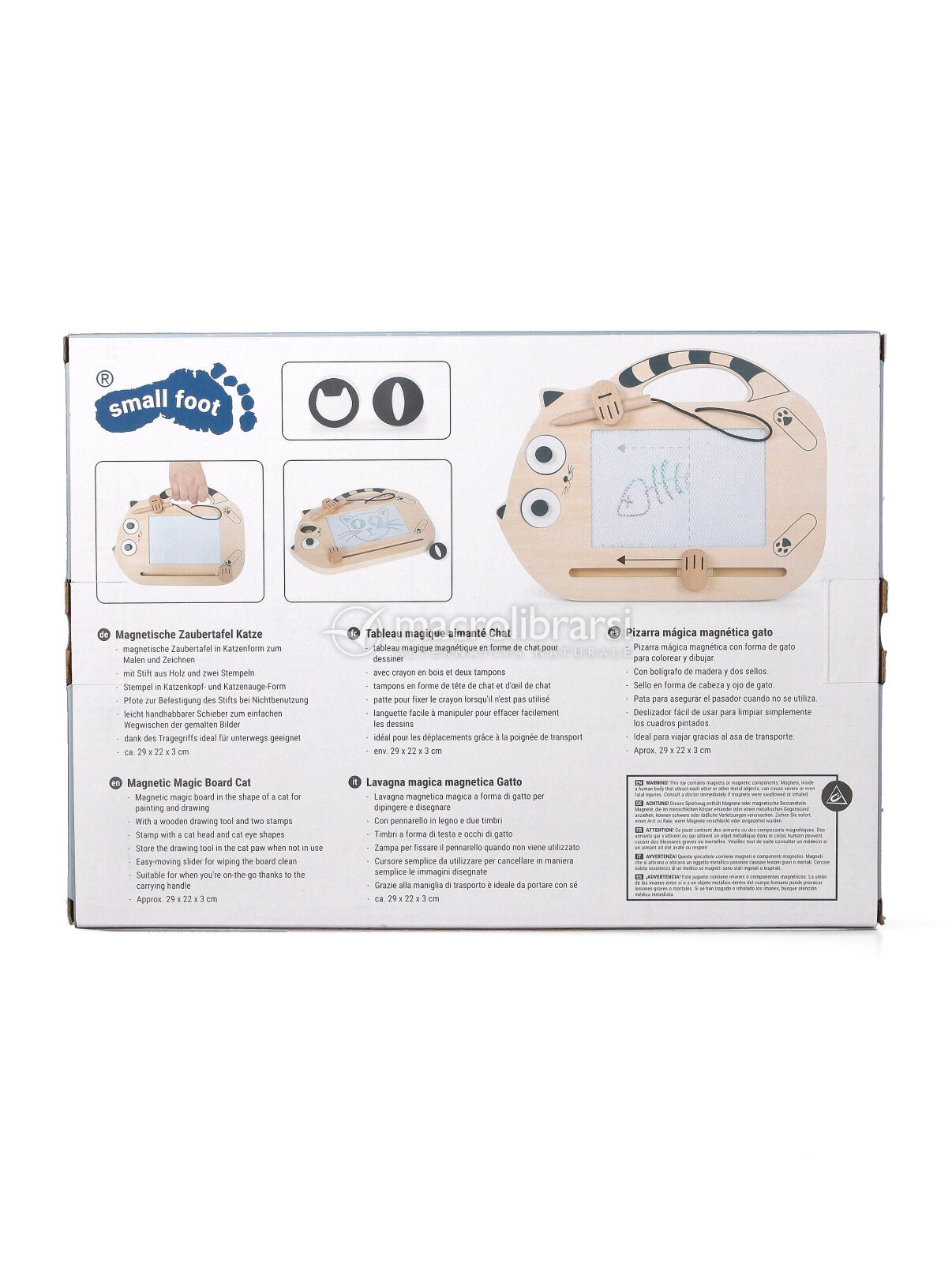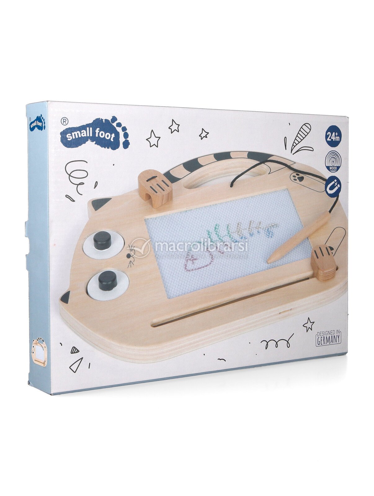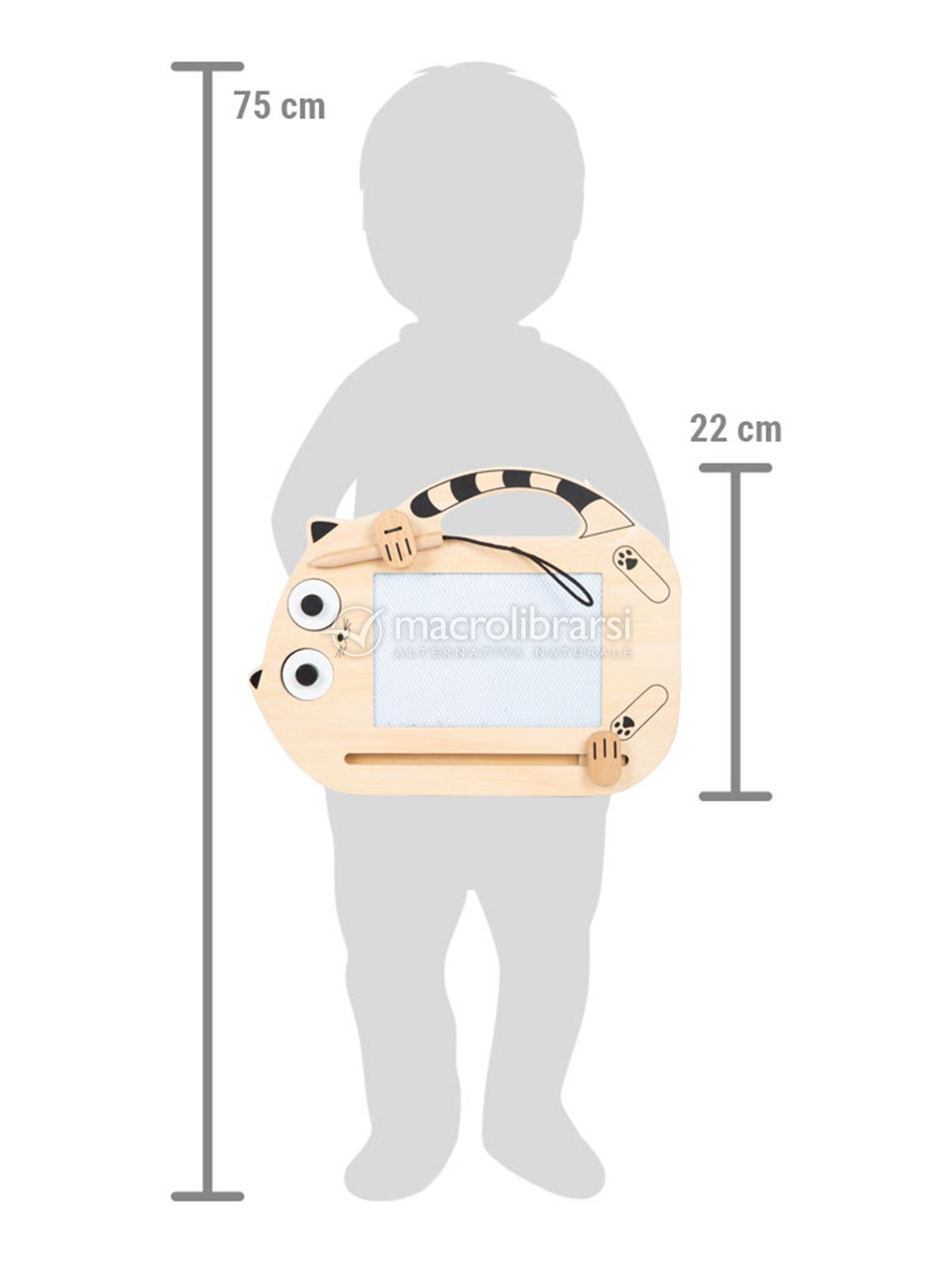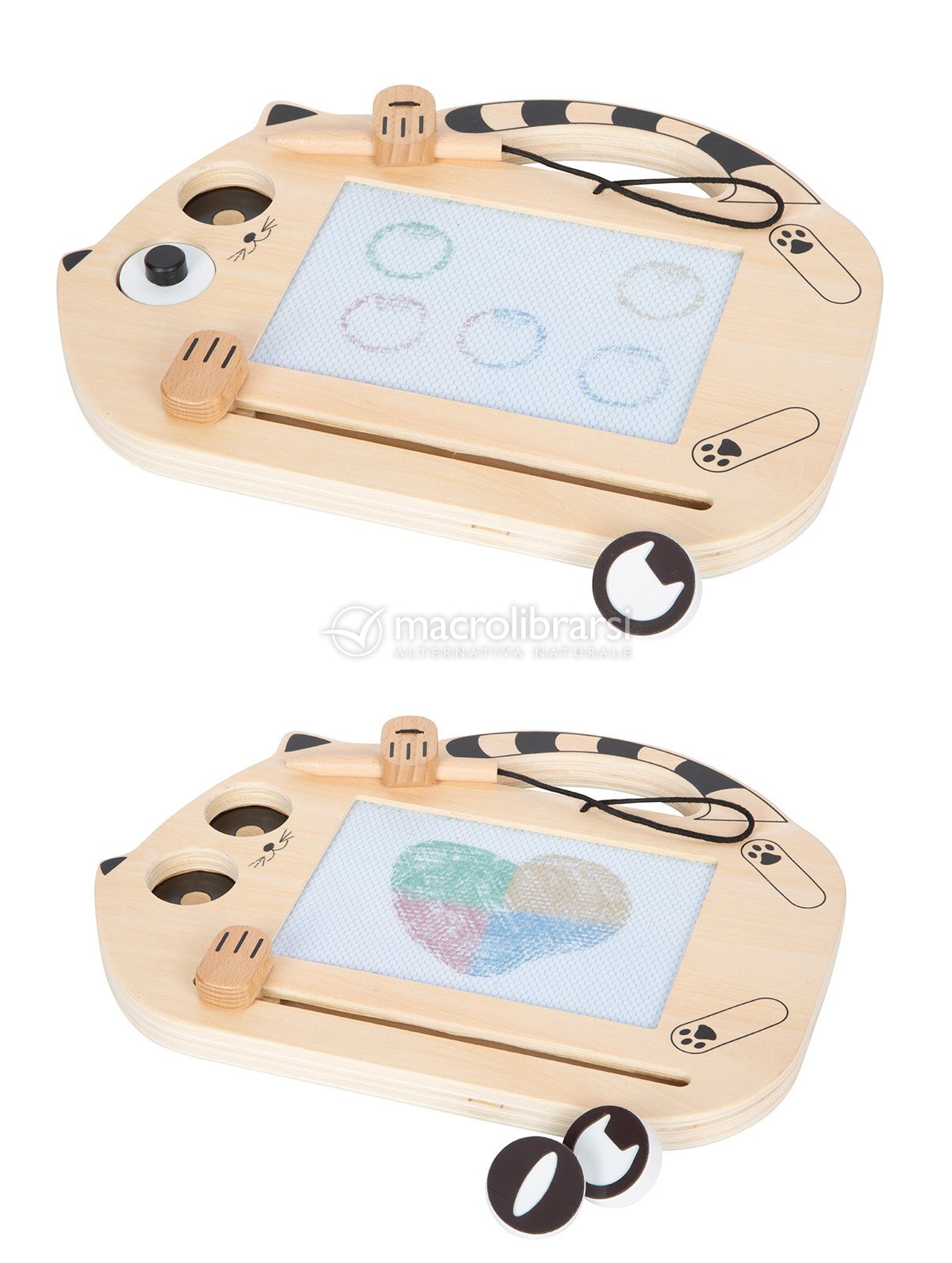 Lavagna magnetica in legno a forma di gatto per dipingere e disegnare, con penna e due timbri.