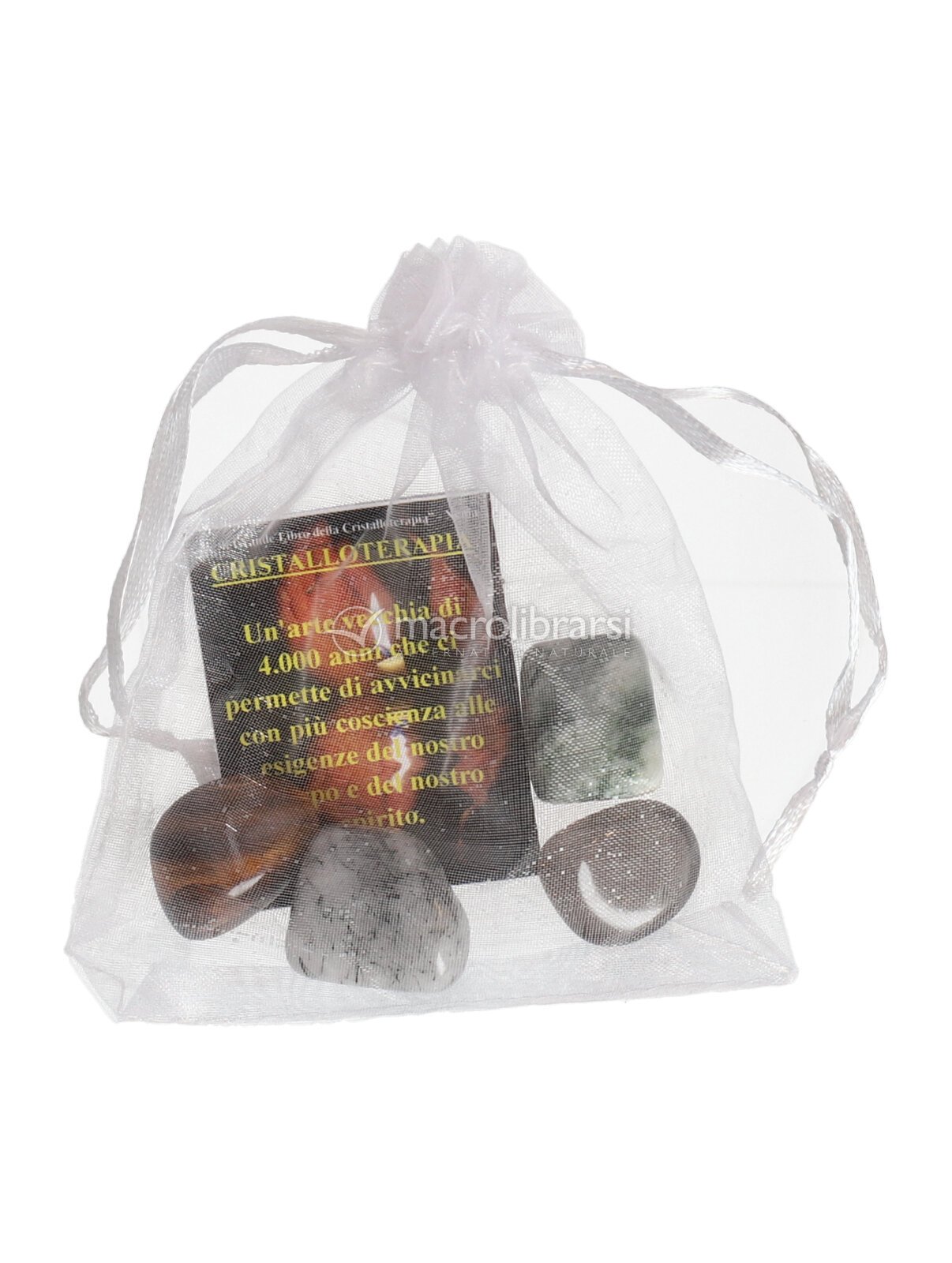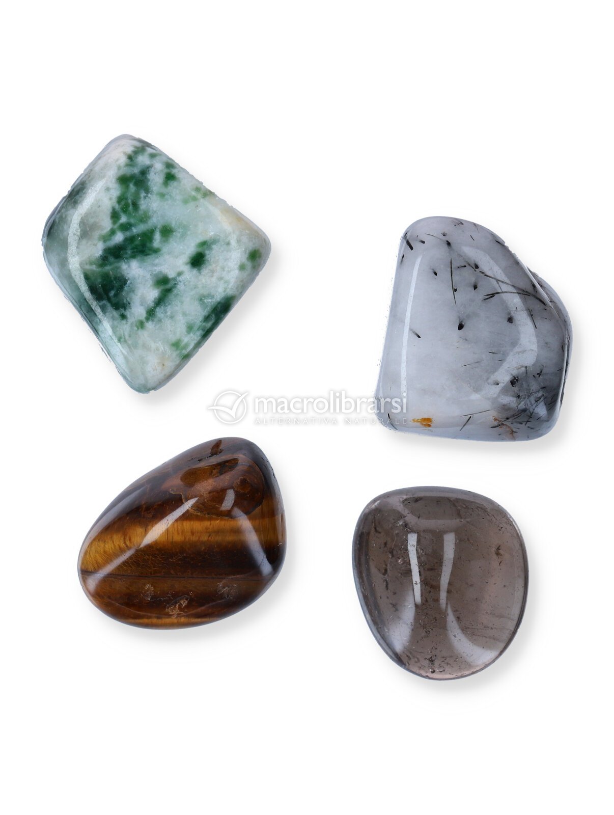 Un insieme di 4 piccole pietre pensato per proteggere da paure, negatività e stress, perfetto soprattutto per chi fa un lavoro particolarmente stressante o sta affrontando forti problemi personali.