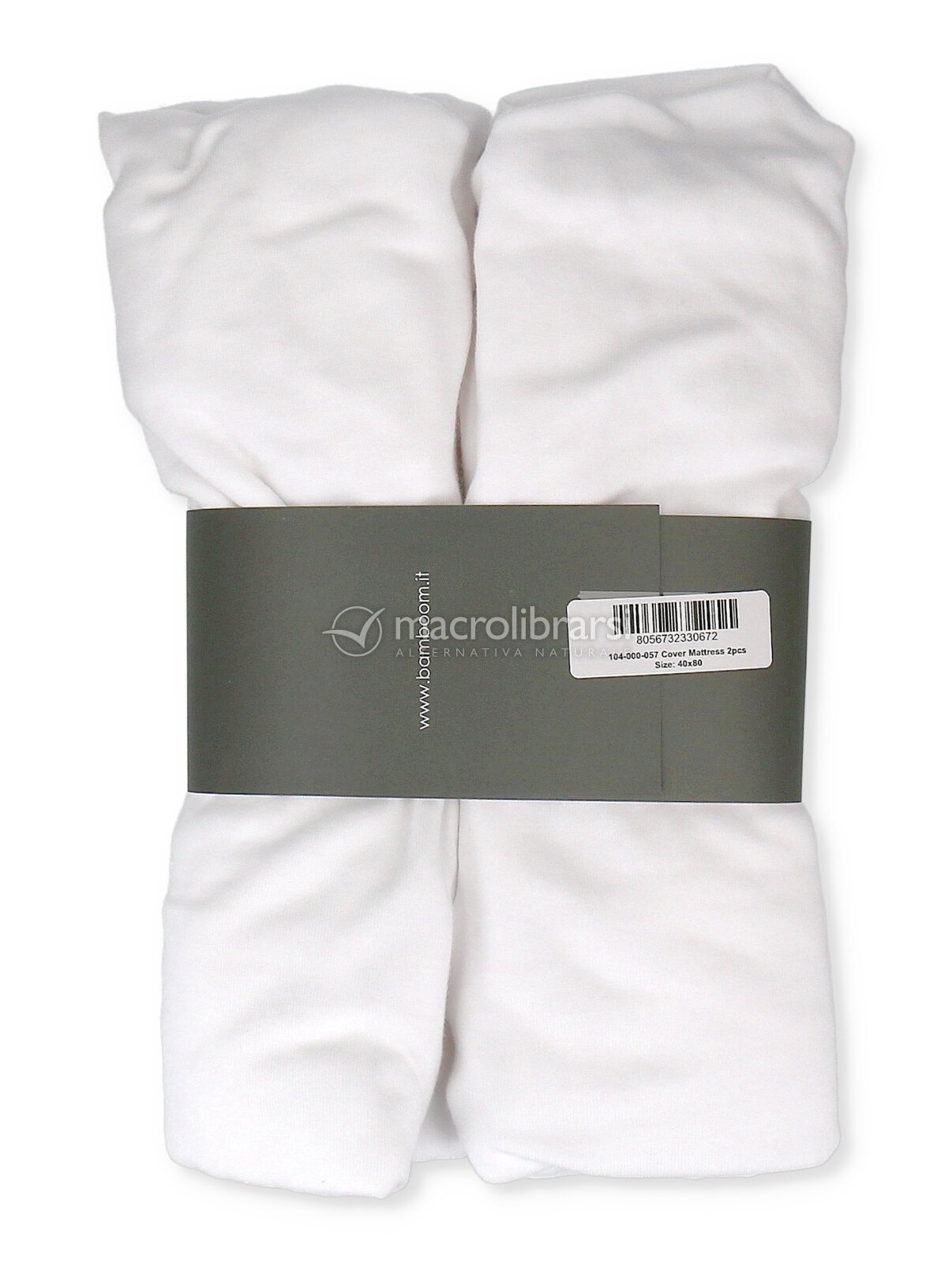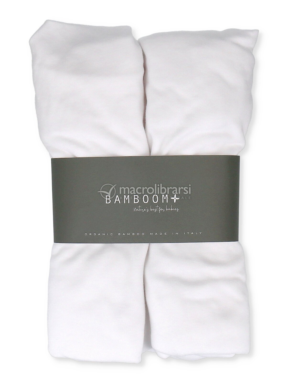 Coppia di lenzuoli coprimaterassi con angoli, adatti a culle e carrozzine, in bambù organico certificato.