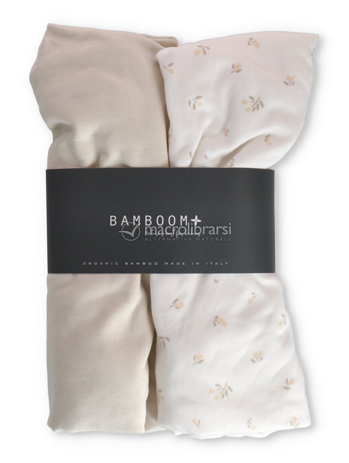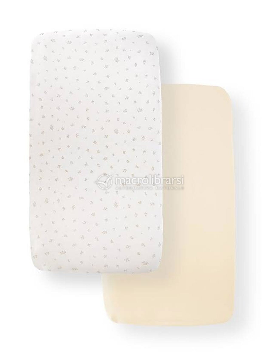 Coppia di lenzuoli coprimaterassi con angoli per culle e carrozzine, in bambù organico.