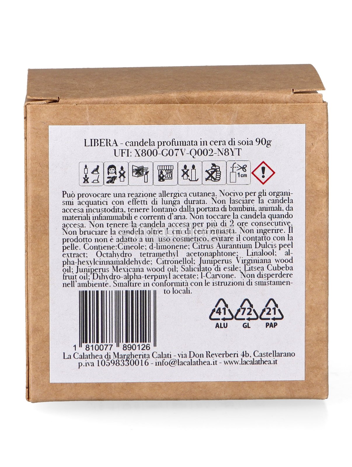 | Avvertenze | Può provocare una reazione allergica cutanea. Nocivo per gli organismi acquatici con effetti di lunga durata. Non lasciare la candela accessa incustodita, tenere lontano dalla portata di bambini, animali, da materiali infiammabili e correnti d'aria. Non toccare la candela quando accesa. Non tenere la candela accesa per più di 2 ore consecutive. Non bruciare la candela oltre 1 cm di cera rimasta. Non ingerire. Il prodotto non è adatto ad uso cosmetico, evitare il contatto con la pelle. Non disperdere nell'ambiente. Contiene: Cineole, d-Limonene; Citrus Aurantium Dulcis peel extract; Octahydro tetramethyl acetonaphtone; Linalool; alpha-hexylcinnamaldehyde; Citronellol; Juniperus Virginiana wood oil; Juniperus Mexicana wood oil; Salicilato di esile; Litsea Cubeba fruit oil; Dihydro-alpha-terpinyl acetate; l-Carvone. |