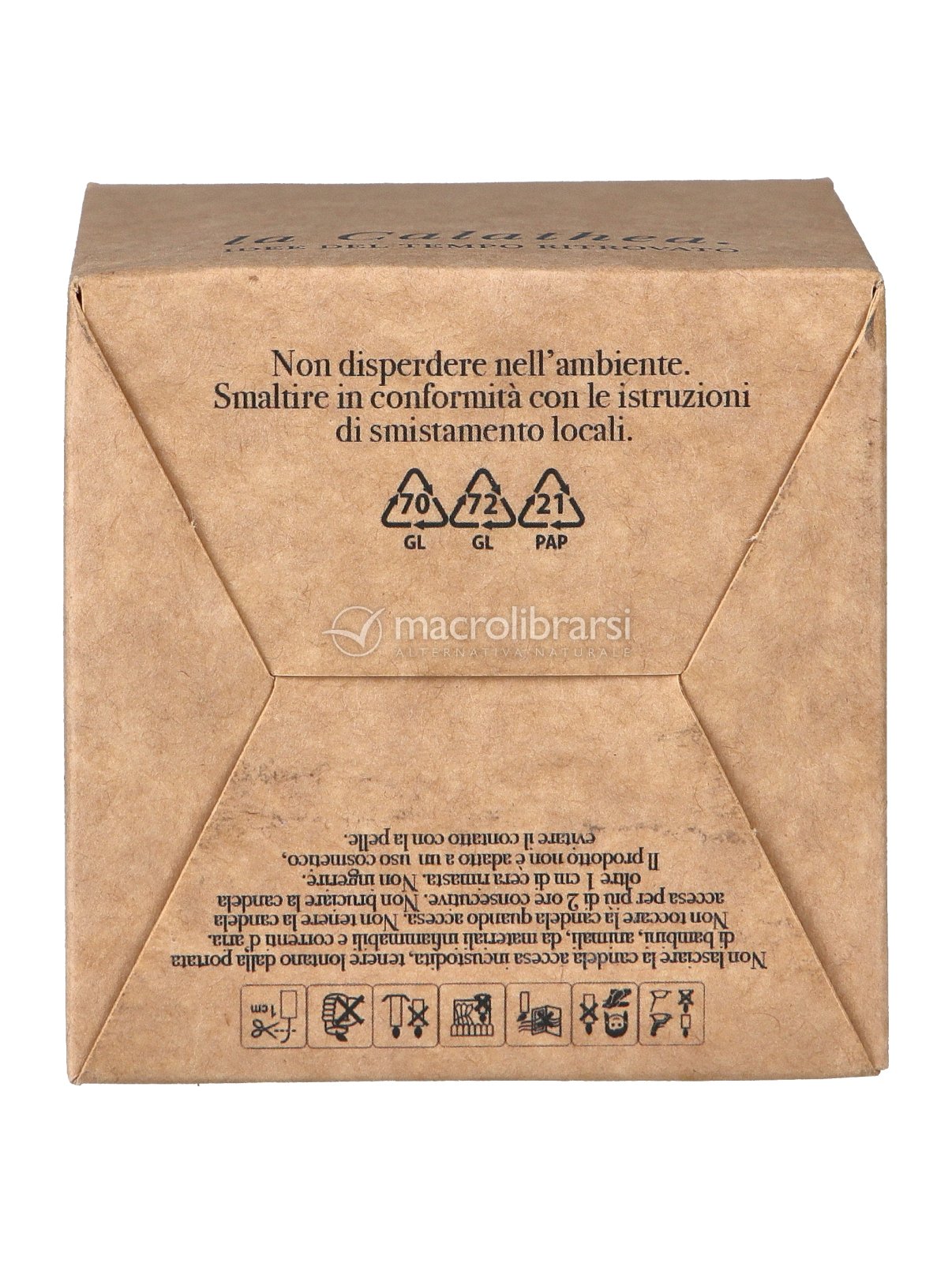 Si tratta di una candela in cera di soia dal profumo pulito, fresco e aromatico, fatta a mano in Italia e colata con cura in un elegante vasetto di vetro ambrato.