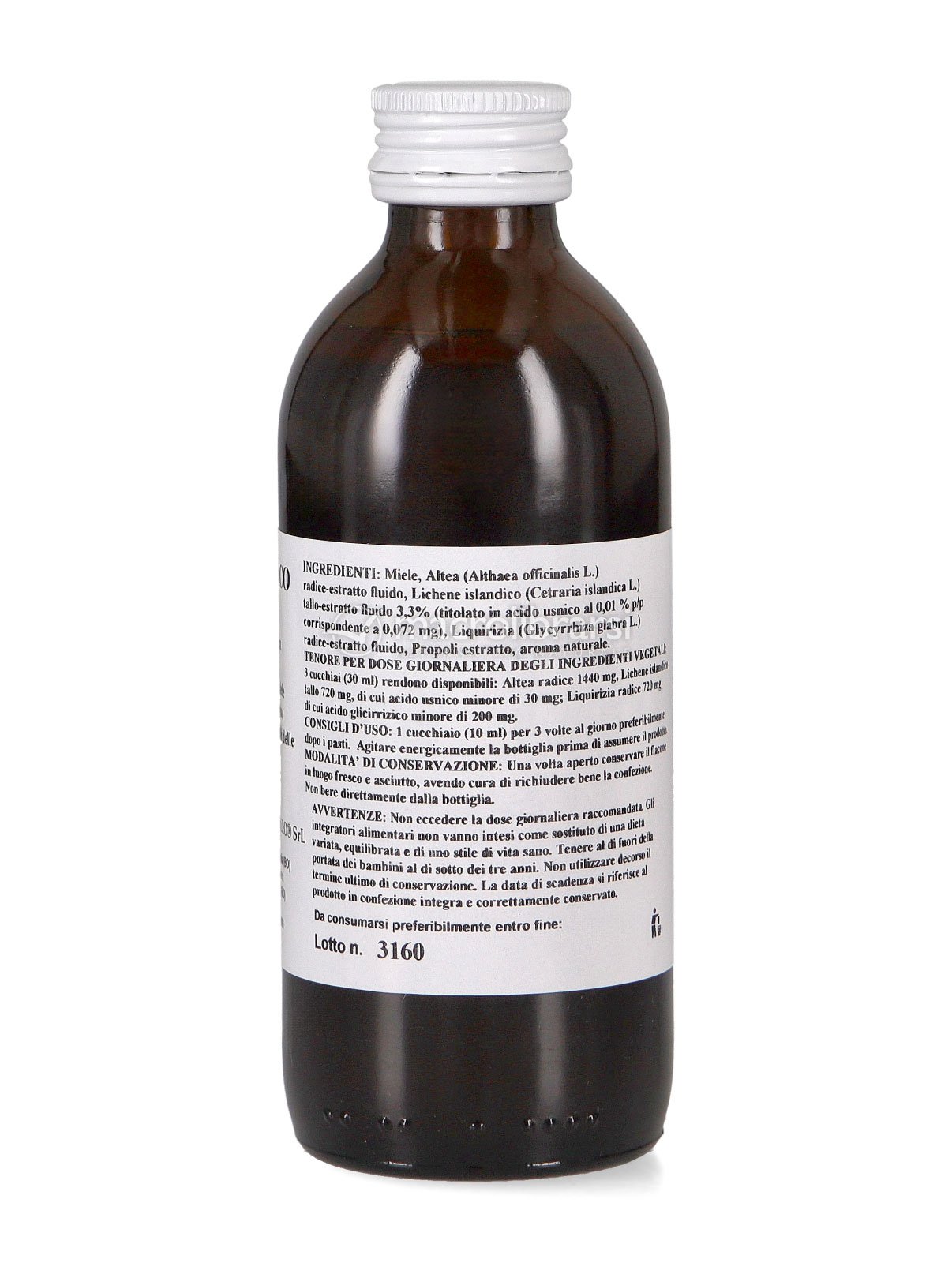 Lo Sciroppo al Lichene Islandico è dolcificato col miele, un ottimo nutrimento ricco di zuccheri semplici monosaccaridi quali glucosio e fruttosio e ricco di vitamine, sali minerali e altri principi attivi.