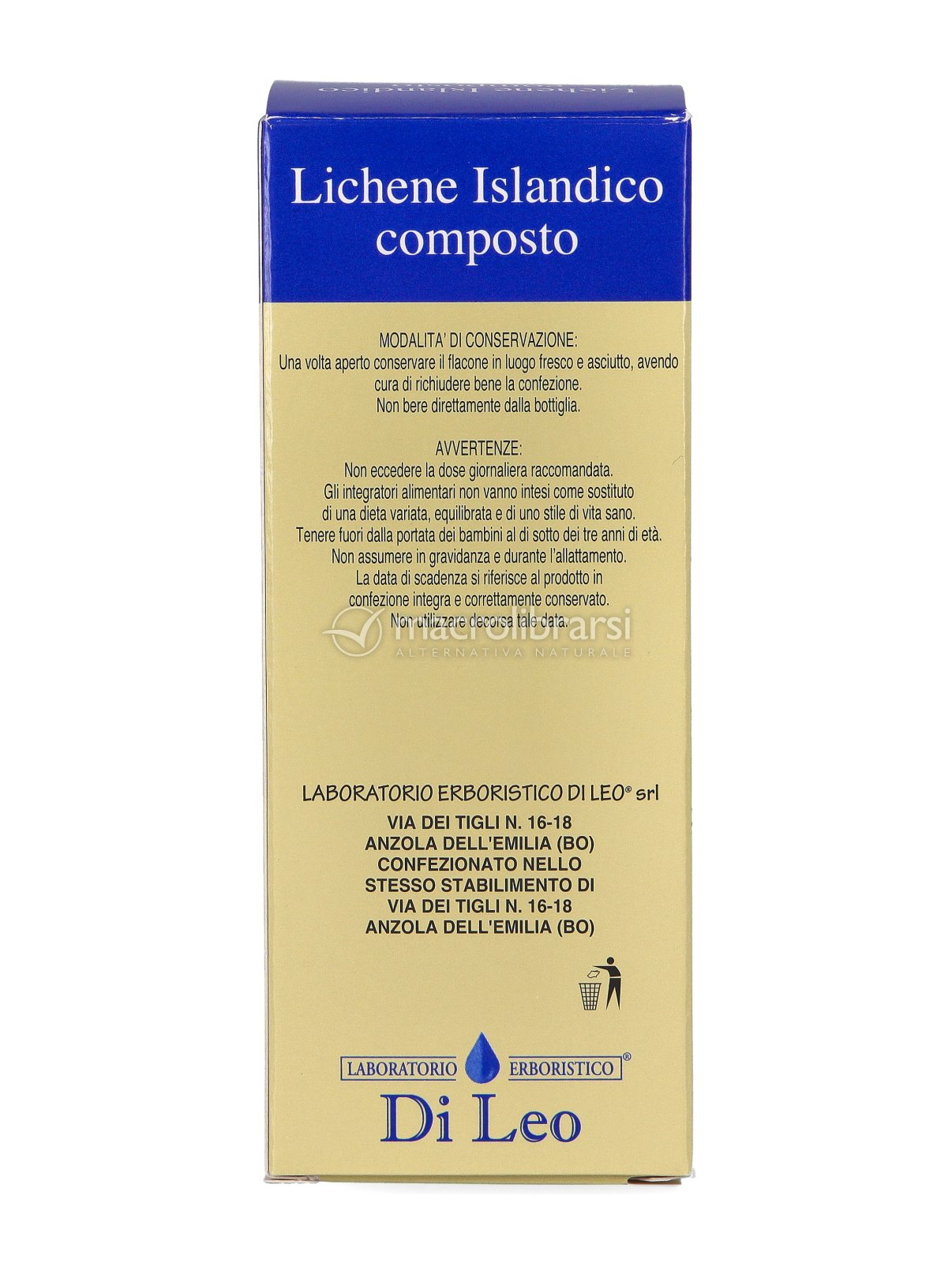 | Disclaimer | Non superare la dose giornaliera consigliata. Gli integratori alimentari non vanno intesi come sostituti di una dieta variata ed equilibrata. Tenere fuori dalla portata dei bambini al di sotto dei tre anni. Non utilizzare in gravidanza e nei bambini o comunque per periodi prolungati senza sentire il parere del medico. Conservare in luogo asciutto e lontano da fonti di calore. Richiudere la confezione dopo l'uso. Macrolibrarsi ricorda l'importanza di seguire uno stile di vita sano e un'alimentazione variata ed equilibrata. |