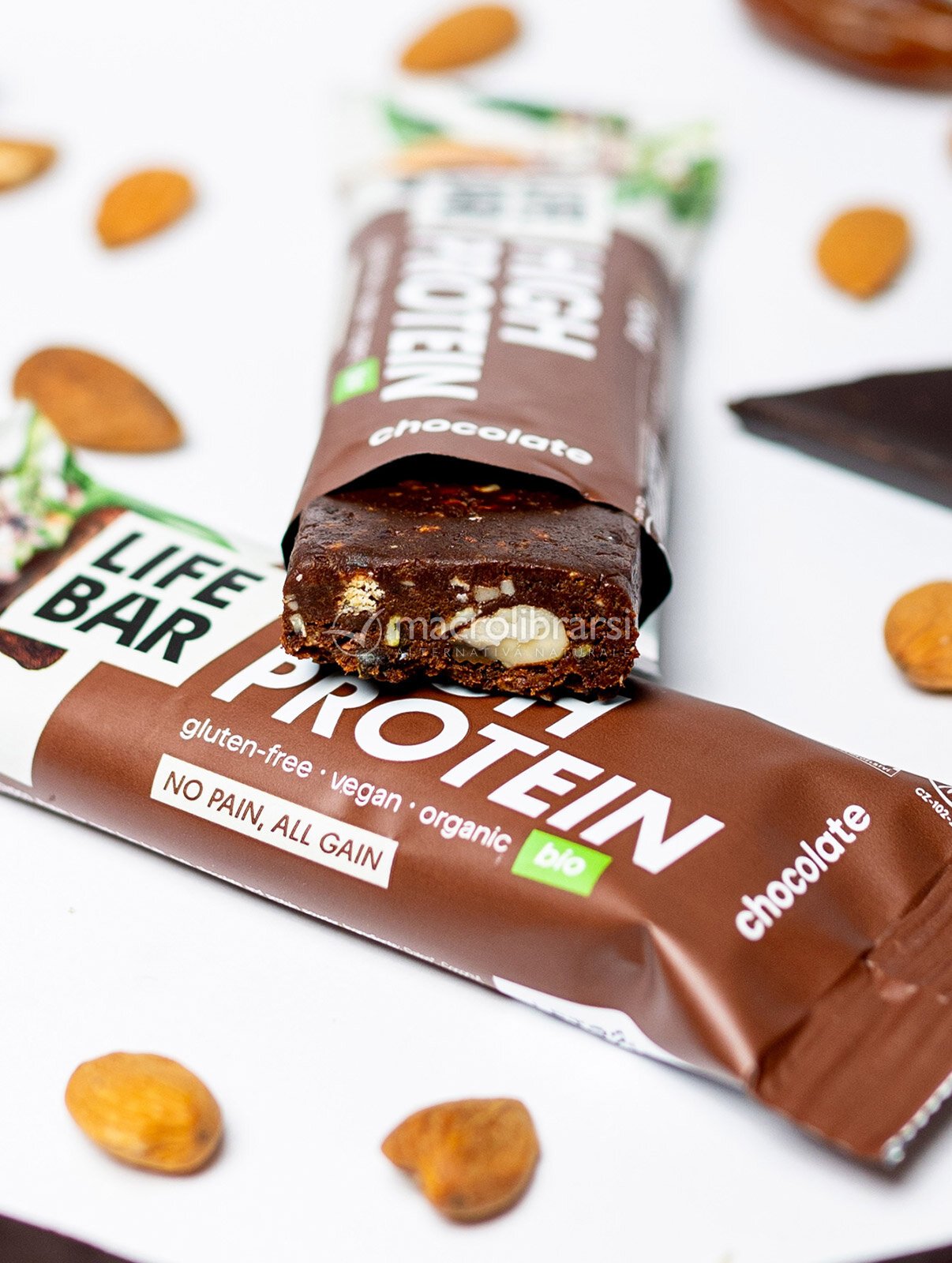 | Lo trovi in | Alimenti e Bevande: #Barrette con cioccolato bio #Barrette proteiche bio |