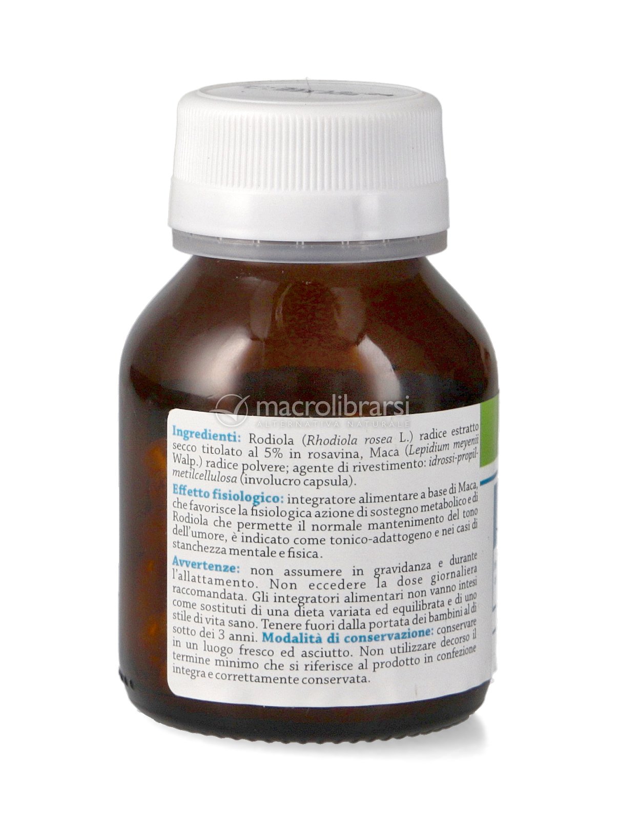 Rodiola (Rhodiola rosea L.) estratto secco 150 mg standardizzato in rosavina 5%, Maca (Lepedium Meyenii Walpers) 110 mg.