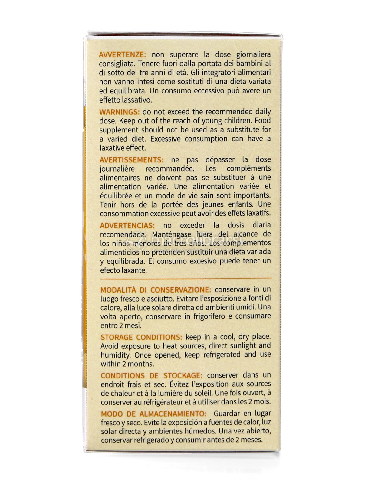 Disclaimer Non superare la dose giornaliera consigliata. Gli integratori alimentari non vanno intesi come sostituti di una dieta variata ed equilibrata. Tenere fuori dalla portata dei bambini al di sotto dei tre anni. Non utilizzare in gravidanza e nei bambini o comunque per periodi prolungati senza sentire il parere del medico. Conservare in luogo asciutto e lontano da fonti di calore. Richiudere la confezione dopo l'uso. Macrolibrarsi ricorda l'importanza di seguire uno stile di vita sano e un'alimentazione variata ed equilibrata.
