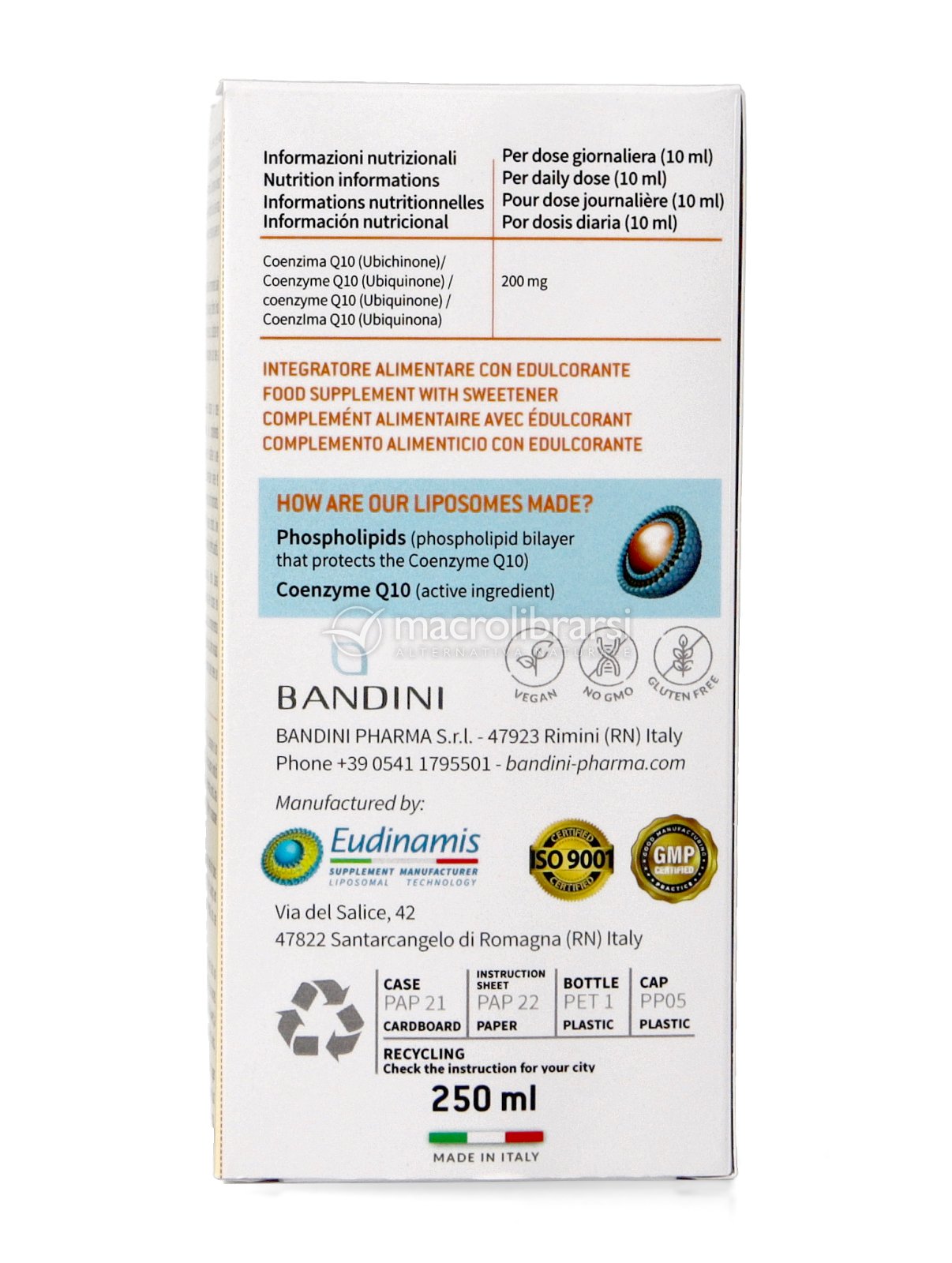 Liposomal Coenzyme Q10 di Bandini Pharma è un integratore liposomiale di Coenzima Q10, ottenuto con una particolare lavorazione che prevede il rivestimento delle molecole di Co-Q10 con il liposoma, uno speciale involucro con composizione lipidica simile a quella della membrana che riveste le cellule
