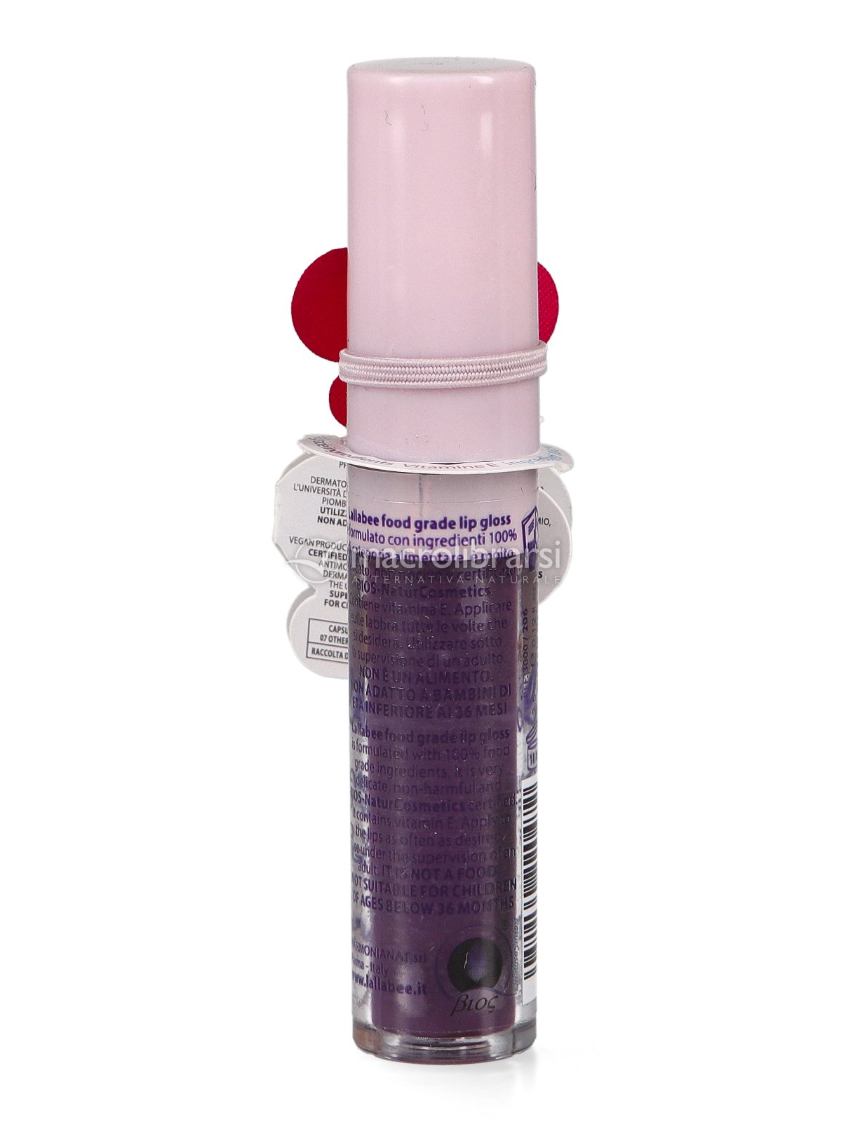 Lucidalabbra per bambini con aroma alla mora, formulato con soli ingredienti di categoria alimentare.