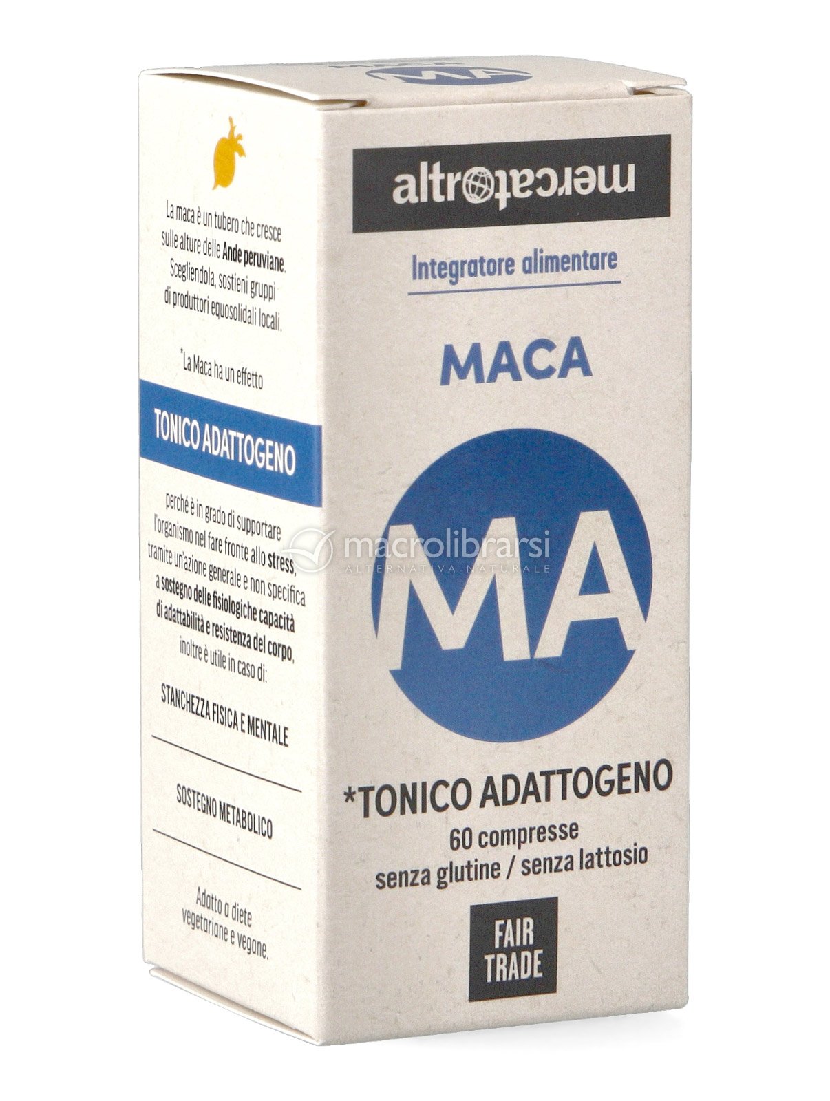 Maca Altromercato è un integratore alimentare in compresse, del commercio equo, indicata per affrontare periodi particolarmente stressanti e impegnativi, in cui c'è più bisogno di un sostegno a livello psico-fisico.