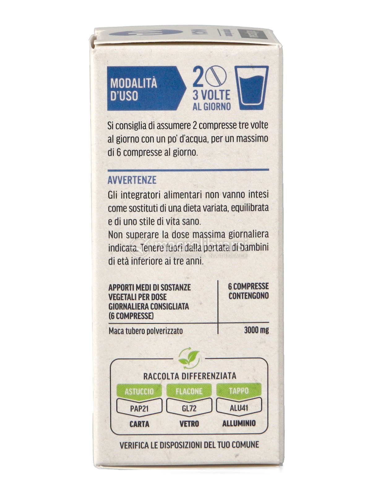 Ho voluto provare la maca in questa forma in compresse perché mi è parsa più comoda, però necessiterebbero più flaconi. Sicuramente più efficace se assunta in polvere nelle bevande.