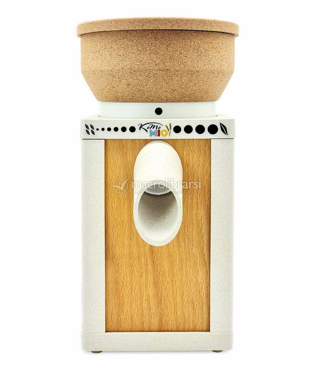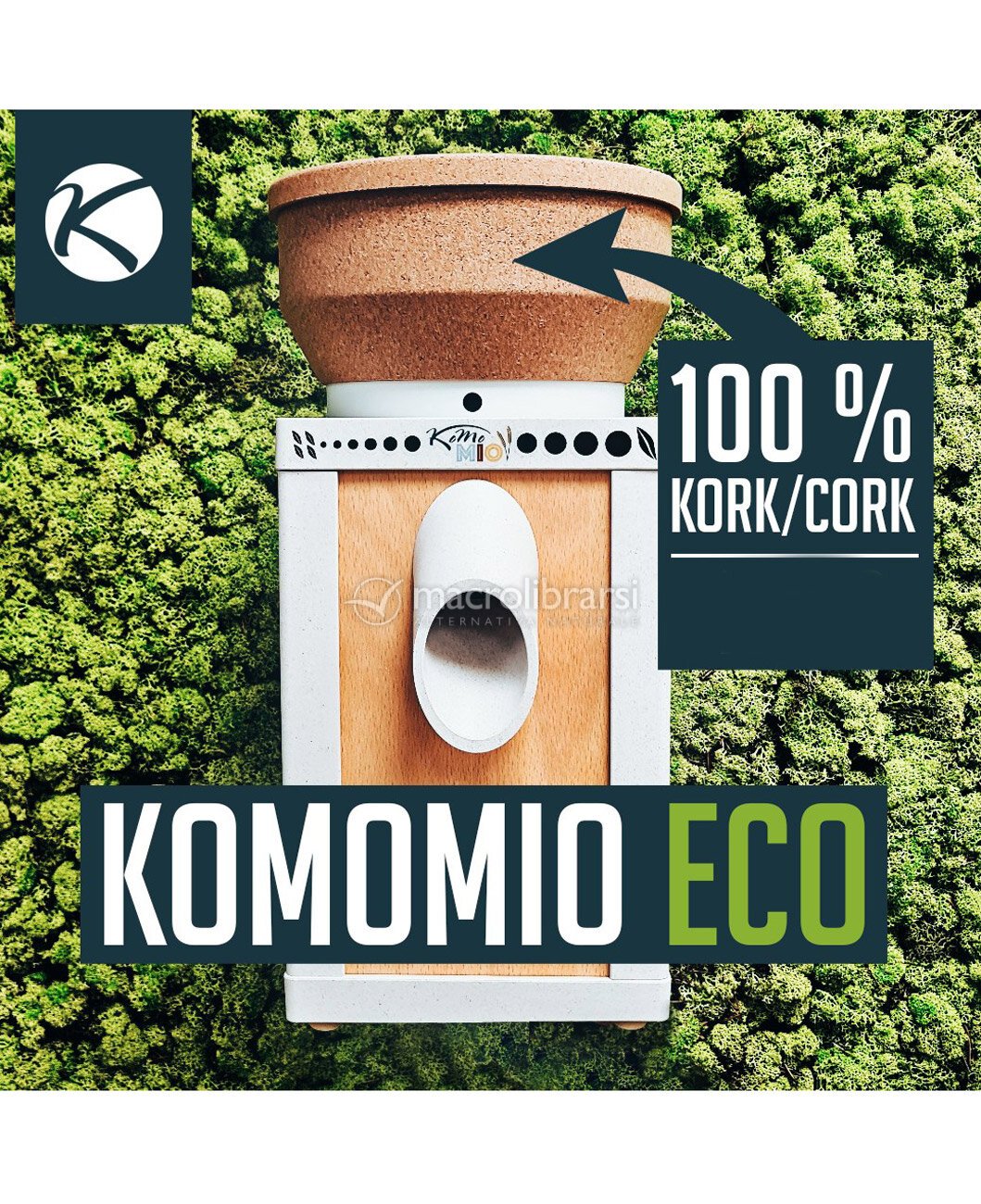 L'imbuto è il primo del suo genere al mondo ed è realizzato al 100% in sughero. Il mulino KoMoMio ECO è attivato con un motore che richiede solo 250 watt di potenza, e permette un consumo energetico minimo rispetto ad altri macina cereali e rispettoso dell'ambiente.