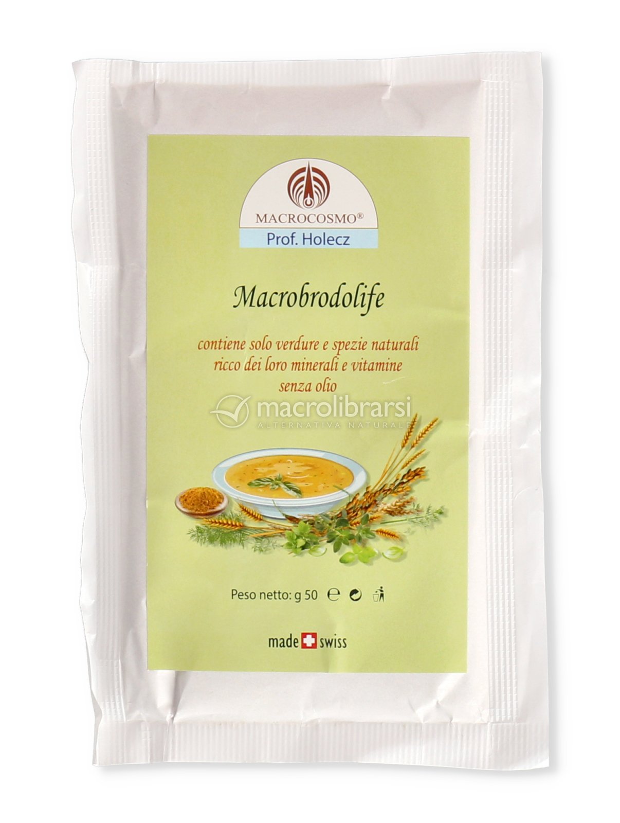 Il Macrobrodolife è un polvere solubile di verdure e spezie per minestre, contiene pastinaca, sedano rapa, carota, radice di prezzemolo, semi di lino, sale marino, sedano gambi, foglia, cipolla, farina di riso integrale, prezzemolo, barbabietola, erba cipollina, finocchio, aglio, spezie naturali di: cumino, senape, alloro, origano, paprika dolce, paprika piccante, zenzero e curcuma.