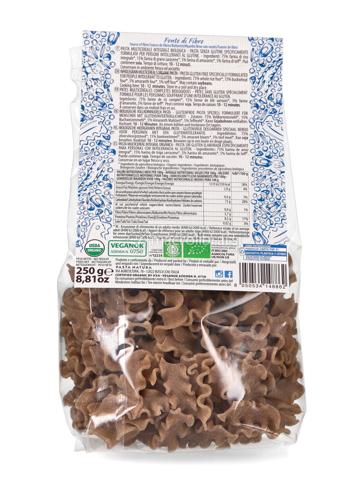 Realizzata con una miscela equilibrata di farina di riso integrale, di grano saraceno, di amaranto e di teff, questa pasta risulta facilmente digeribile e, grazie alla trafilatura in bronzo e all'essiccazione a basse temperature, conserva tutte le sue qualità organolettiche e nutrizionali intatte.