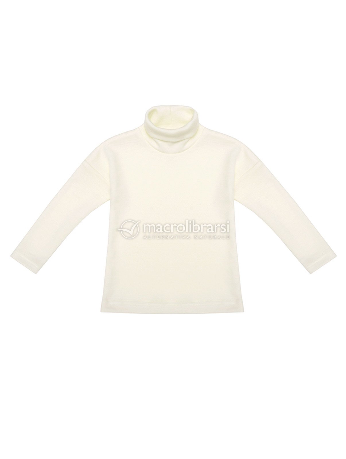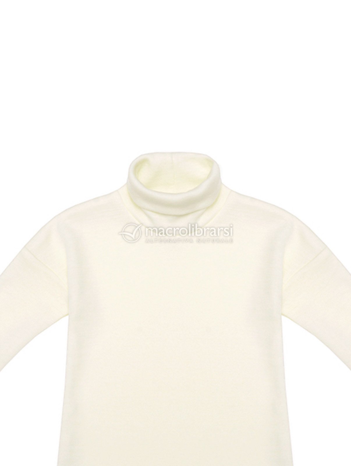 Questa maglia a collo alto di Wooly Organic è realizzata in una pregiata miscela di lana merino (85%) e seta (15%), pensata per unire stile e funzionalità.