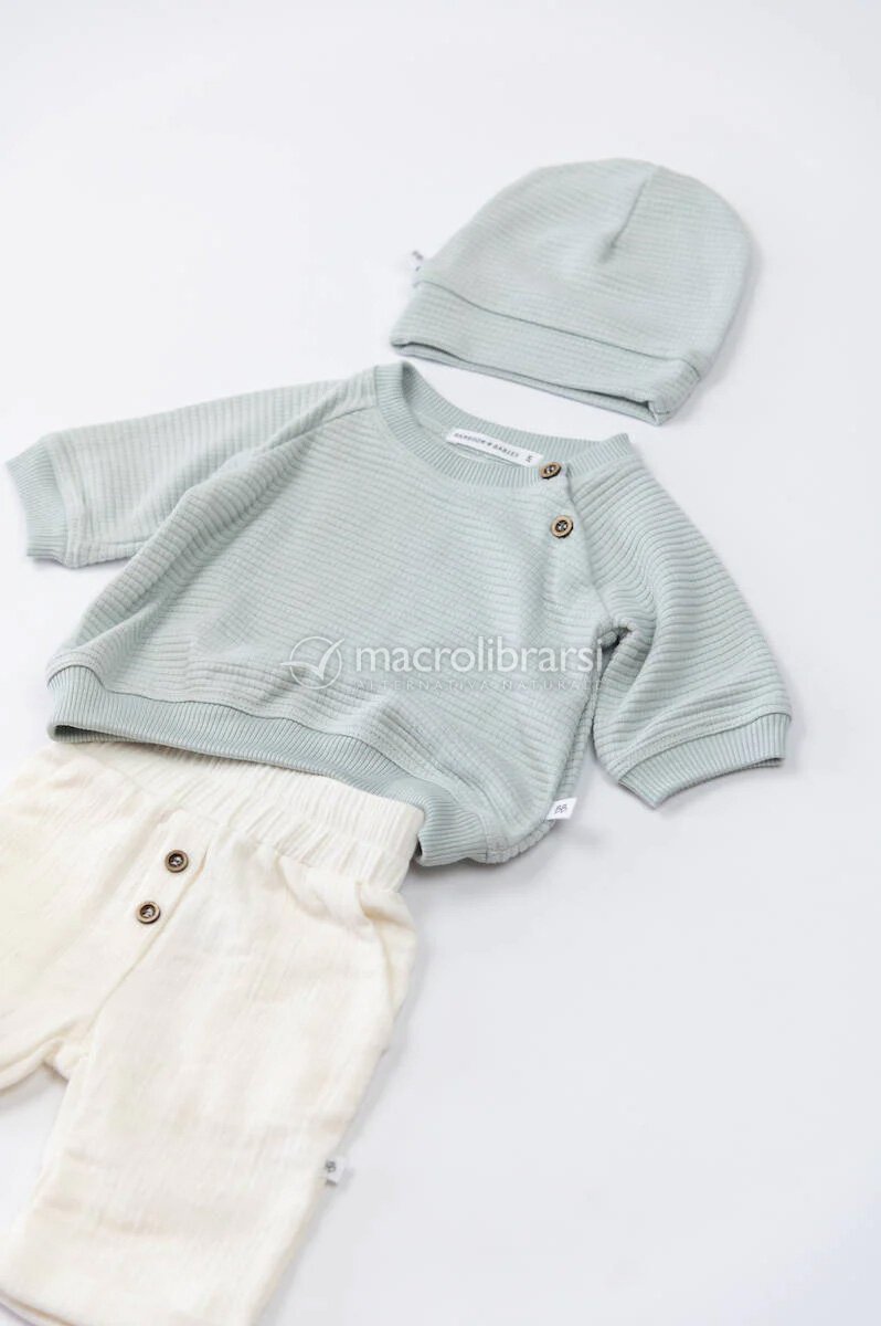 Questa taglia è adatta a bambini di 9/12 mesi che misurano fra i 74 e gli 80 cm.