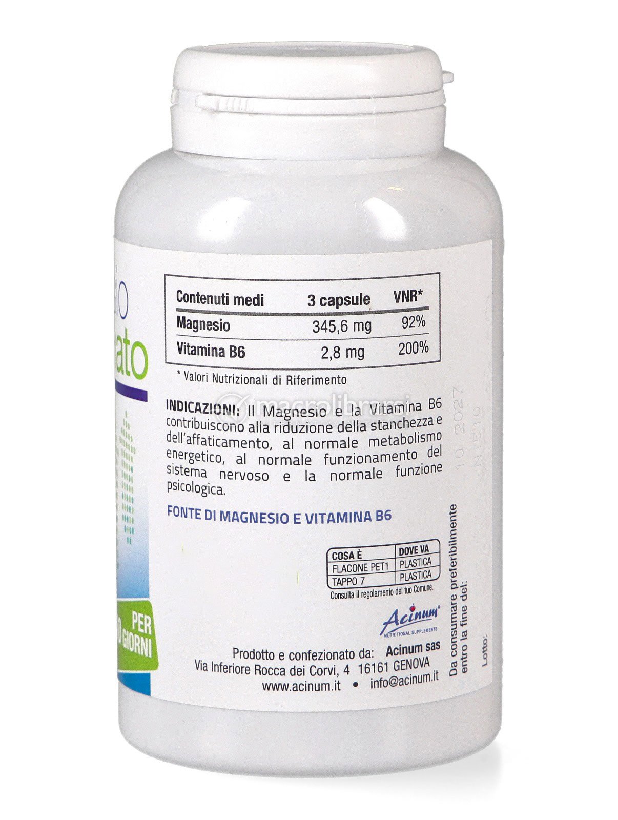 Ho acquistato questo magnesio perché gli ingredienti sono essenziali! Molto utile l'aggiunta di vitamina B6 per contrastare un po' di anemia. Macrolibrarsi propone prodotti difficilmente reperibili altrove! Fantastico!