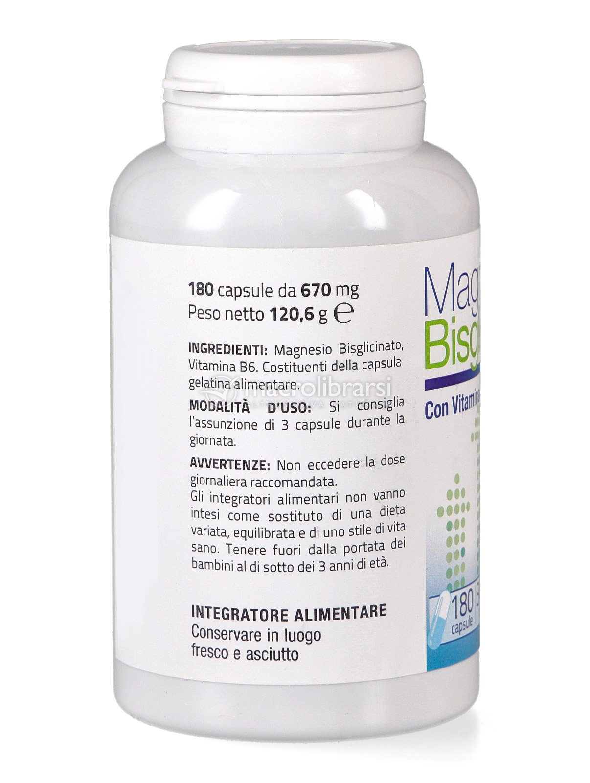 | Disclaimer | Non superare la dose giornaliera consigliata. Gli integratori alimentari non vanno intesi come sostituti di una dieta variata ed equilibrata. Tenere fuori dalla portata dei bambini al di sotto dei tre anni. Non utilizzare in gravidanza e nei bambini o comunque per periodi prolungati senza sentire il parere del medico. Conservare in luogo asciutto e lontano da fonti di calore. Richiudere la confezione dopo l'uso. Macrolibrarsi ricorda l'importanza di seguire uno stile di vita sano e un'alimentazione variata ed equilibrata. |