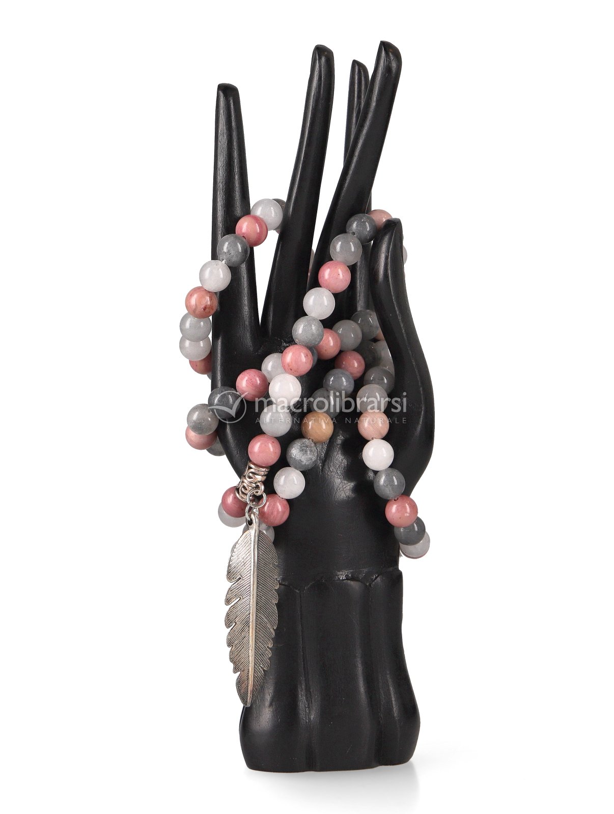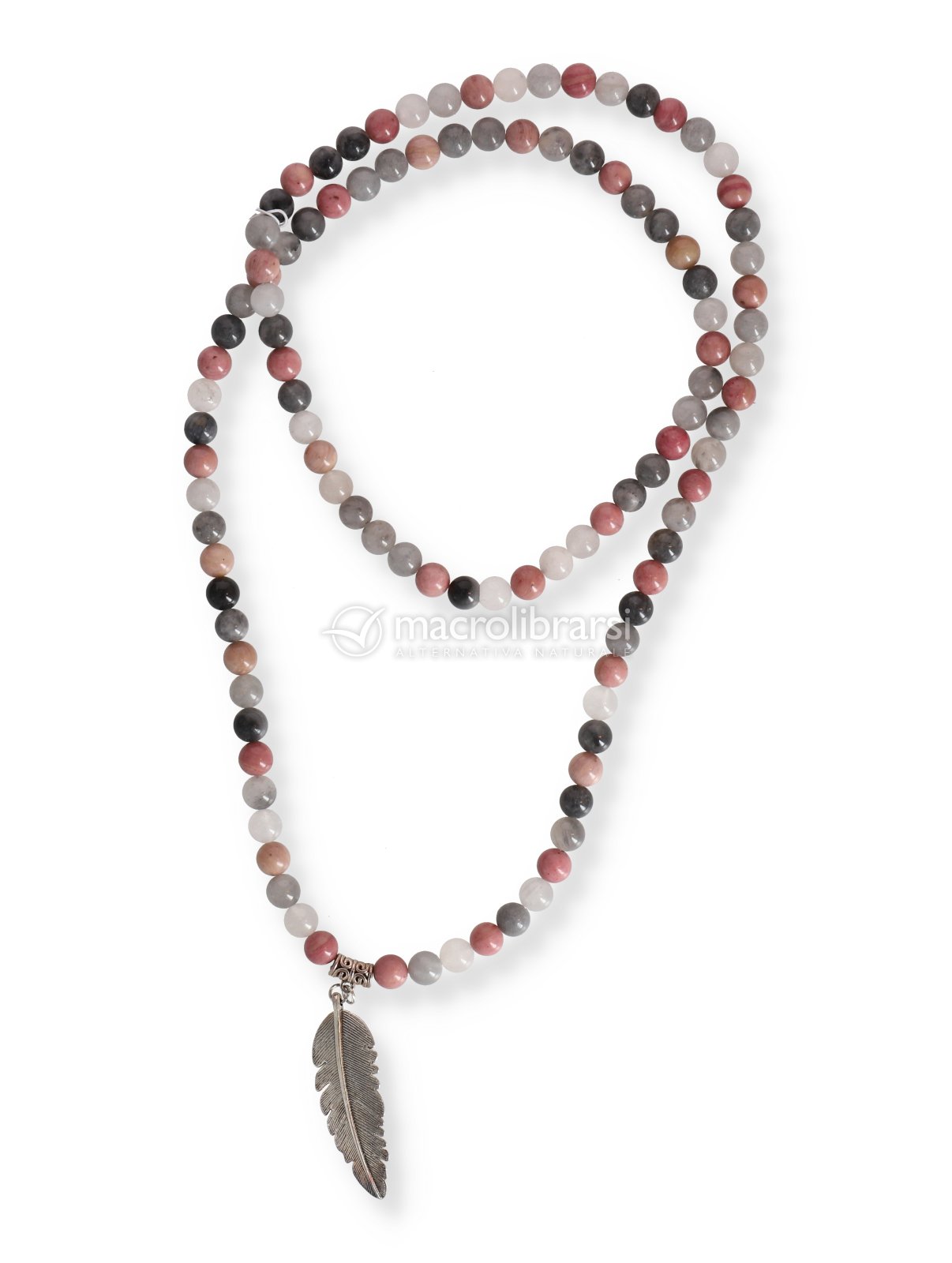 Una mala in Rodonite e Quarzo Grigio utile per la meditazione e la preghiera.