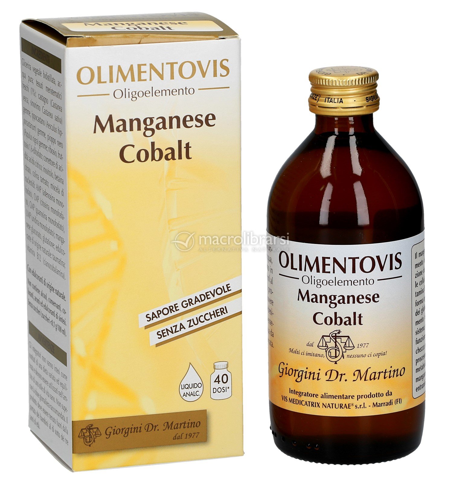 Sono 30 anni che utilizzo il Dr. Giorgini, che sia per prevenire o per curare è il mio alleato migliore. I prodotti sono completamente Naturali, privi di effetti collaterali ed adoperabili insieme a qualsiasi cura farmacologica in essere. Il cobalto è un oligoelemento legato alla vitamina B12 presente nell'organismo soprattutto a livello di fegato, reni e pancreas. È indicata un integrazione di cobalto in aggiunta la normale dieta, soprattutto per quei soggetti che accusano problemi a livello di flora intestinale, per supportare la produzione di globuli rossi e proteggere le fibre nervose. La sua azione si estende anche al funzionamento dei muscoli e dei processi riproduttivi. Grazie alla sua formulazione a base di elementi di origine naturale, Olimentovis Manganese Cobalto aiuta a preservare il corretto funzionamento delle attività metaboliche e degli organi interni.