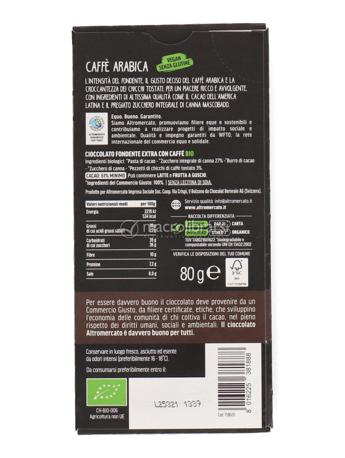 non è la prima volta che acquisto queste tavolette di cioccolato di altromercato! perchè sono di ottima qualità e soprattutto sono VEGAN!! QUESTO GUSTO CON chicchi di caffè arabica sminuzzati che si sentono croccanti all'interno del cioccolato è spettacolare!!! difficile che durino a lungo in dispensa! super consigliata.