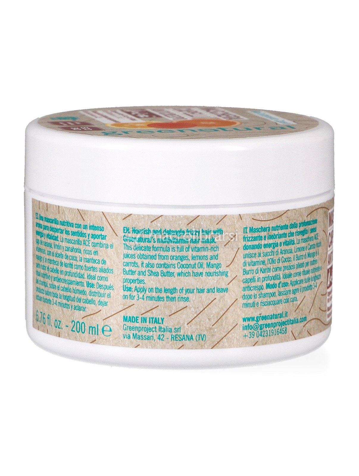 La maschera A+C+E combina i succhi di arancia, limone e carota, naturalmente ricchi di vitamine A, C ed E, con una selezione di oli e burri vegetali ad azione nutriente e protettiva: