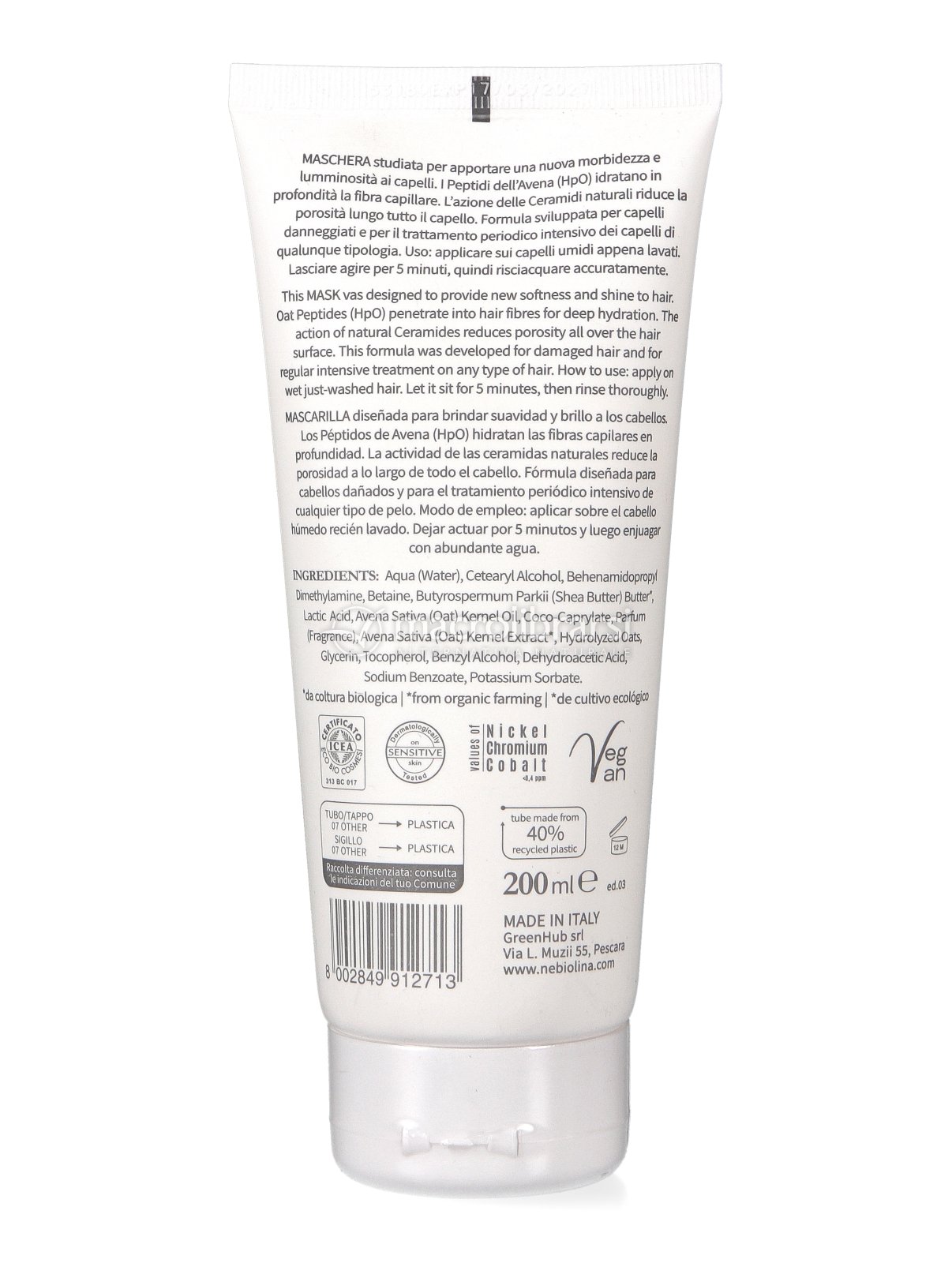Una maschera per capelli danneggiati ricca di vitamina E e Avena biologica, studiata per apportare nuova morbidezza e luminosità ai capelli.