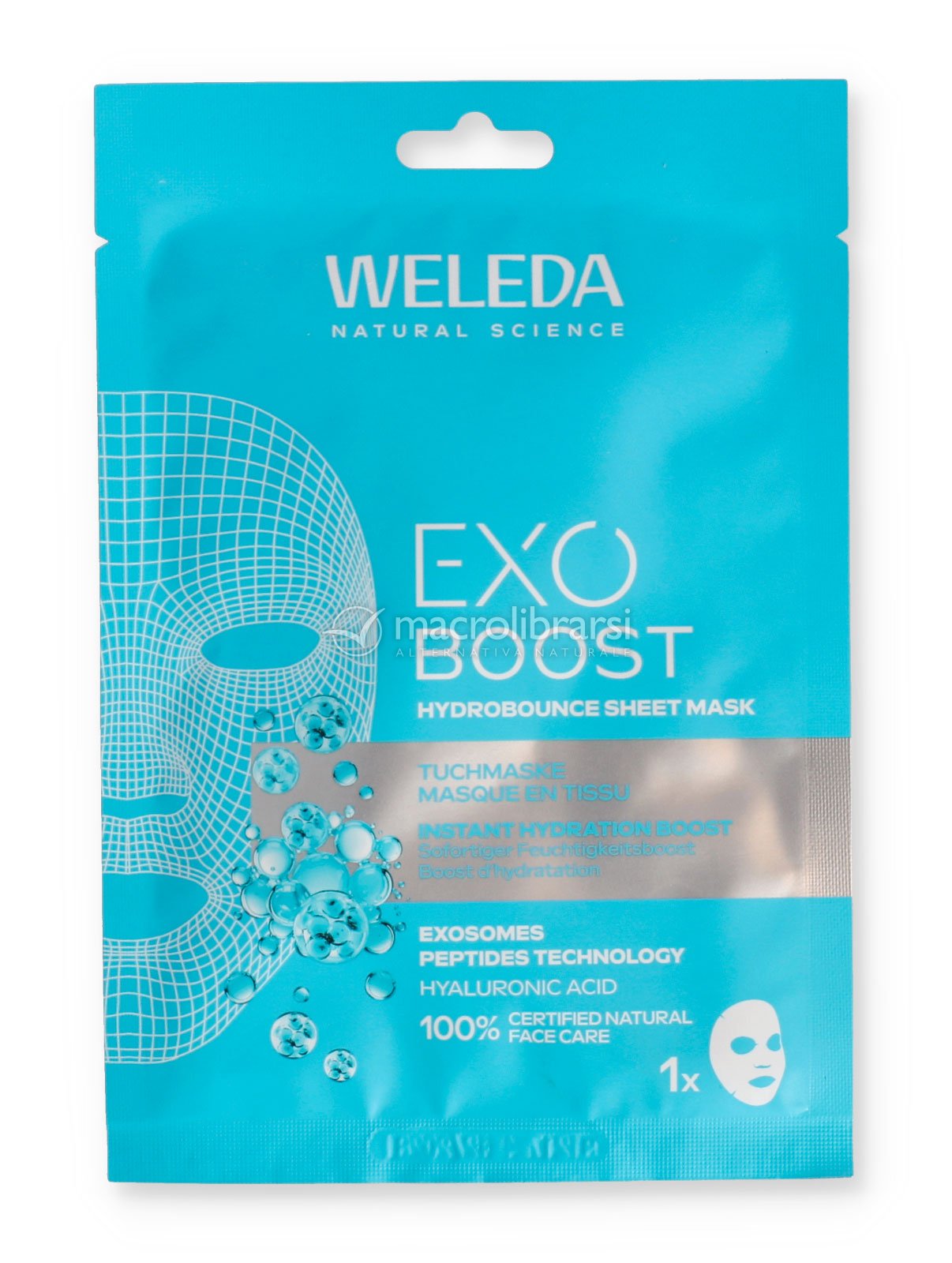 Maschera viso in tessuto 100% naturale, un trattamento idratante intensivo per il viso con acido ialuronico e l'innovativa tecnologia Exosome Peptides, a base di Centella Asiatica.