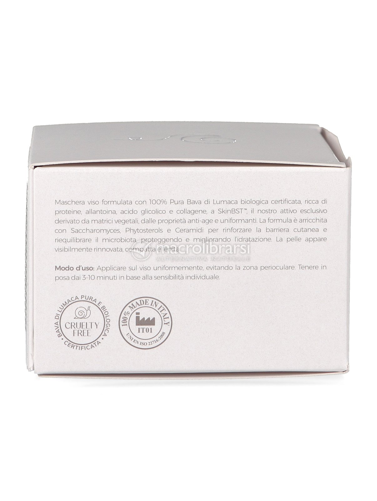 Maschera viso formulata con 100% pura bava di Lumaca biologica certificata dall'azione liftante e uniformante per una pelle più luminosa e ringiovanita.