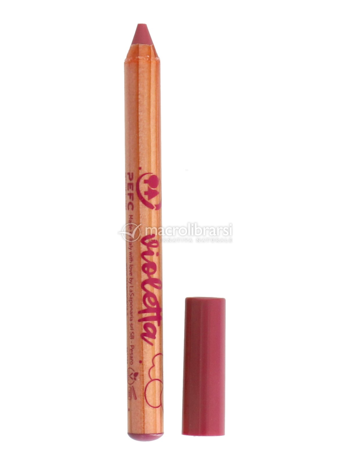 Maticao Violetta al profumo di vaniglia è un balsamo labbra vegano a forma di matita con manico in legno temperabile.