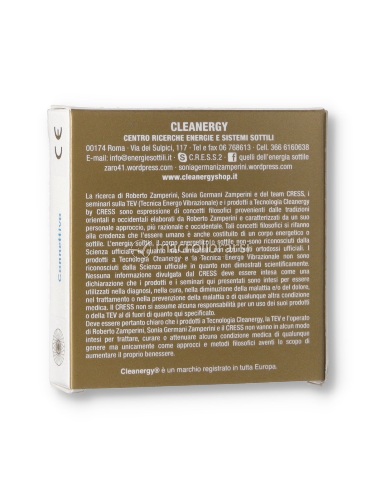 I prodotti a Tecnologia Cleanergy by CRESS sono espressione di concetti filosofici provenienti dalle tradizioni orientali e occidentali elaborati da Roberto Zamperini e caratterizzati da un suo personale approccio, più razionale e occidentale. Tali concetti filosofici si rifanno alla credenza che l’essere umano è anche costituito di un corpo energetico o sottile. L’energia sottile, il corpo energetico o sottile non sono riconosciuti dalla Scienza ufficiale in quanto mai dimostrati con strumenti ortodossi ufficiali. Tali concetti filosofici si rifanno alla credenza che l’essere umano è anche costituito di un corpo energetico o sottile. L’energia sottile, il corpo energetico o sottile non sono riconosciuti dalla Scienza ufficiale in quanto mai dimostrati con strumenti ortodossi ufficiali. I prodotti a Tecnologia Cleanergy e la Tecnica Energo-Vibrazionale non sono riconosciuti dalla Scienza ufficiale in quanto non dimostrati scientificamente. Nessuna informazione divulgata dal CRESS e contenuta in questo Sito deve essere intesa come una dichiarazione che i prodotti qui presentati sono intesi per essere utilizzati nella diagnosi, nella cura, nella diminuzione della malattia e/o del dolore, nel trattamento o nella prevenzione della malattia o di qualunque altra condizione medica. Deve essere pertanto chiaro che i prodotti a Tecnologia Cleanergy non vanno in alcun modo intesi per trattare, curare o attenuare alcuna condizione medica di qualunque genere, ma unicamente come approcci e metodi filosofici aventi lo scopo di aumentare il proprio benessere.