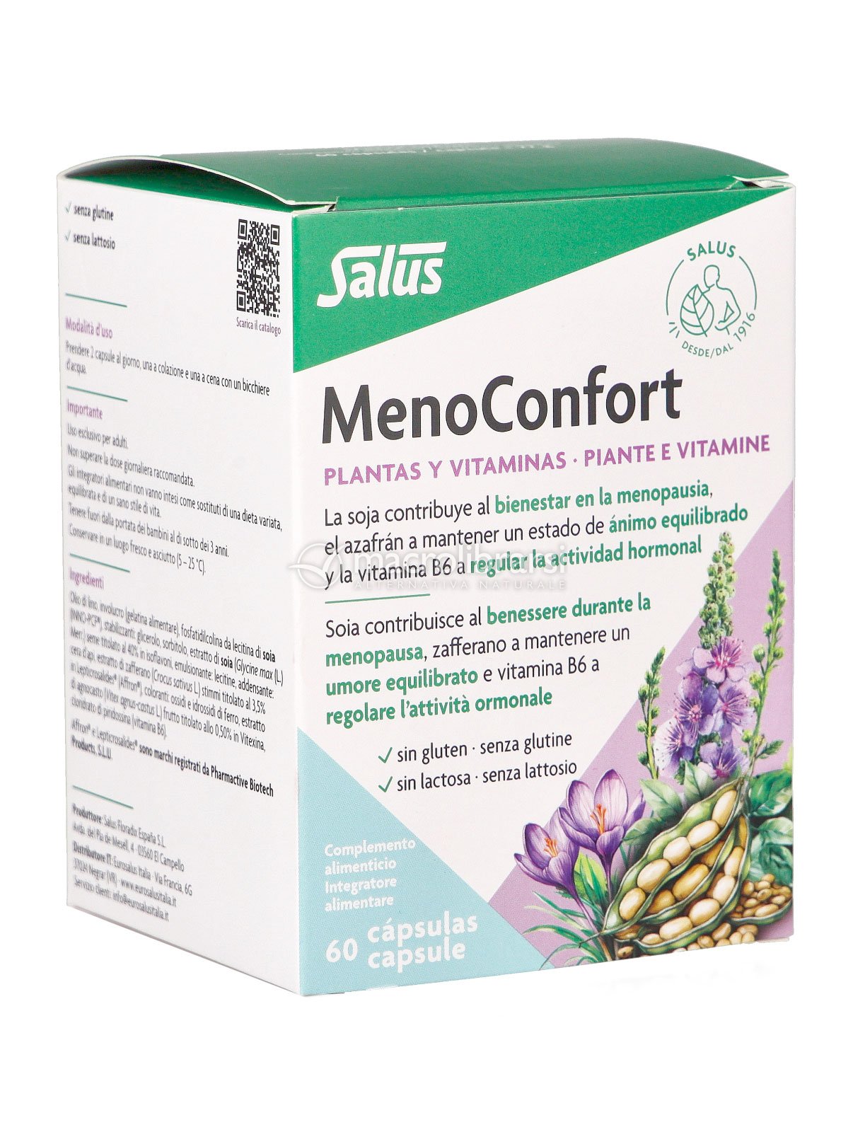 Menoconfort di Salus è un'integratore alimentare a base di estratti vegetali selezionati per contrastare dei disturbi della menopausa.