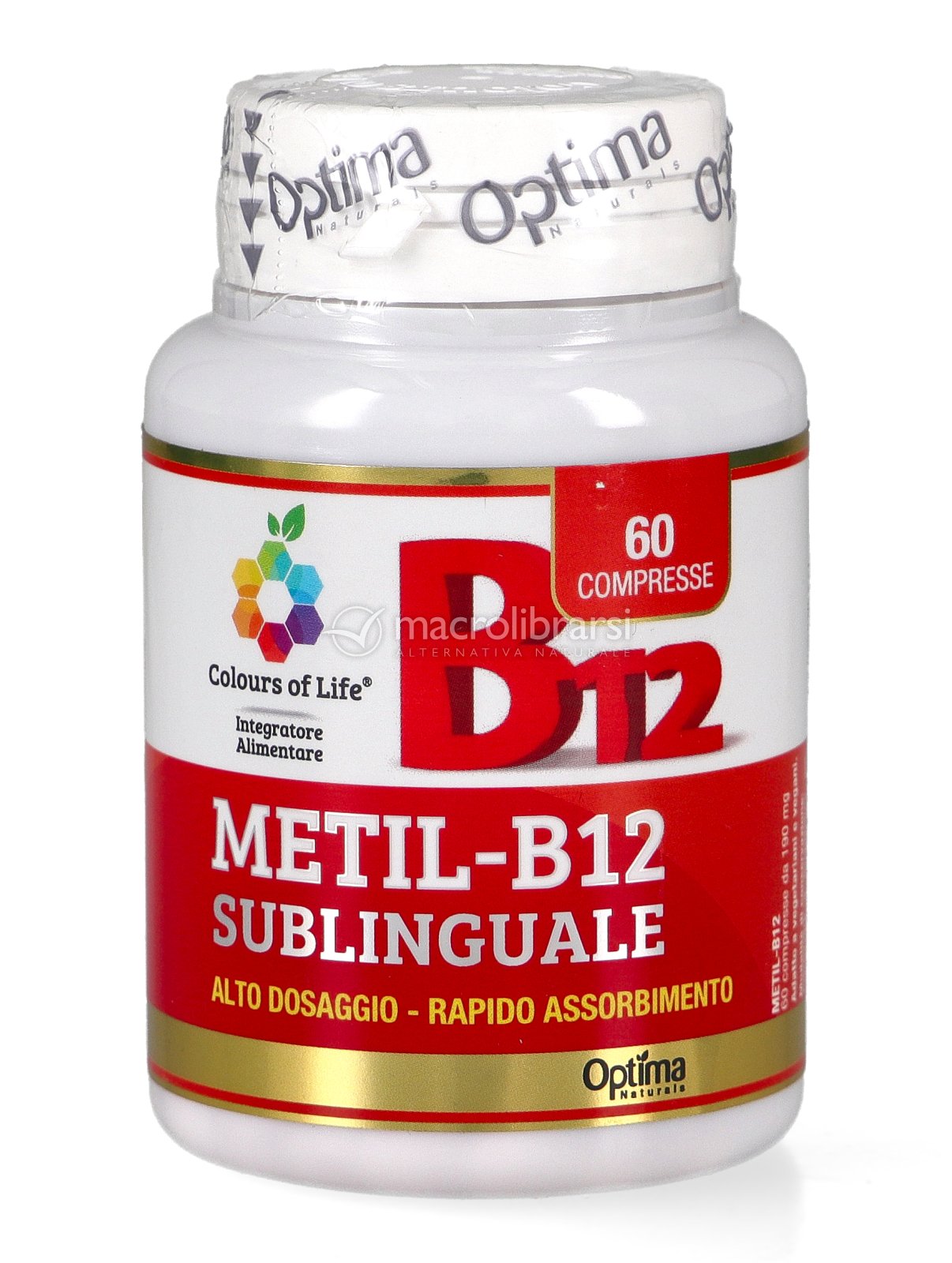 Metil-B12 sublinguale di Optima contiene vitamina B12 in forma di metilcobalamina ad alto dosaggio e a rapido assorbimento.