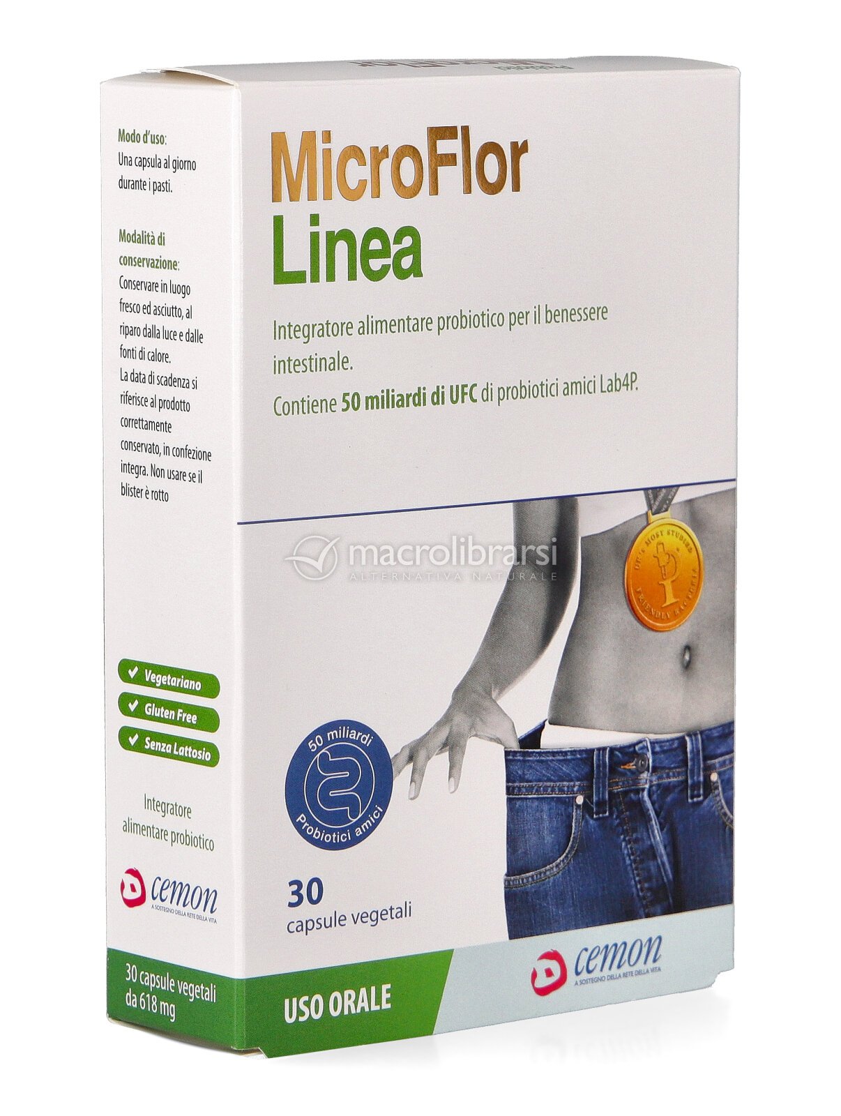 Formulato con 50 miliardi di UFC di probiotici Lab4P (per capsula), MicroFlor Linea è indicato per fornire un supporto giornaliero ottimale di probiotici, utile a ritrovare la regolarità intestinale e con un impatto apprezzabile sulla perdita di peso.