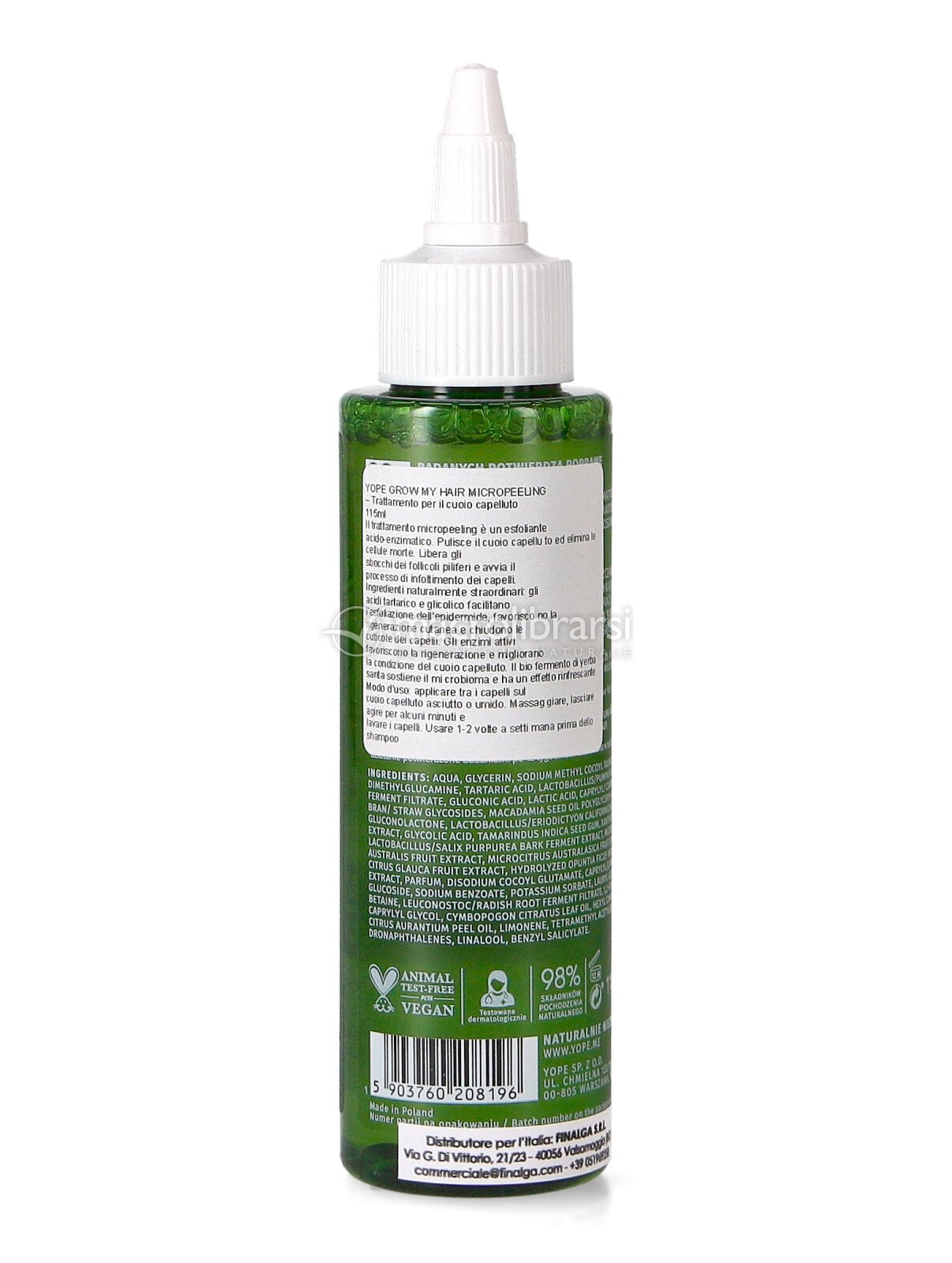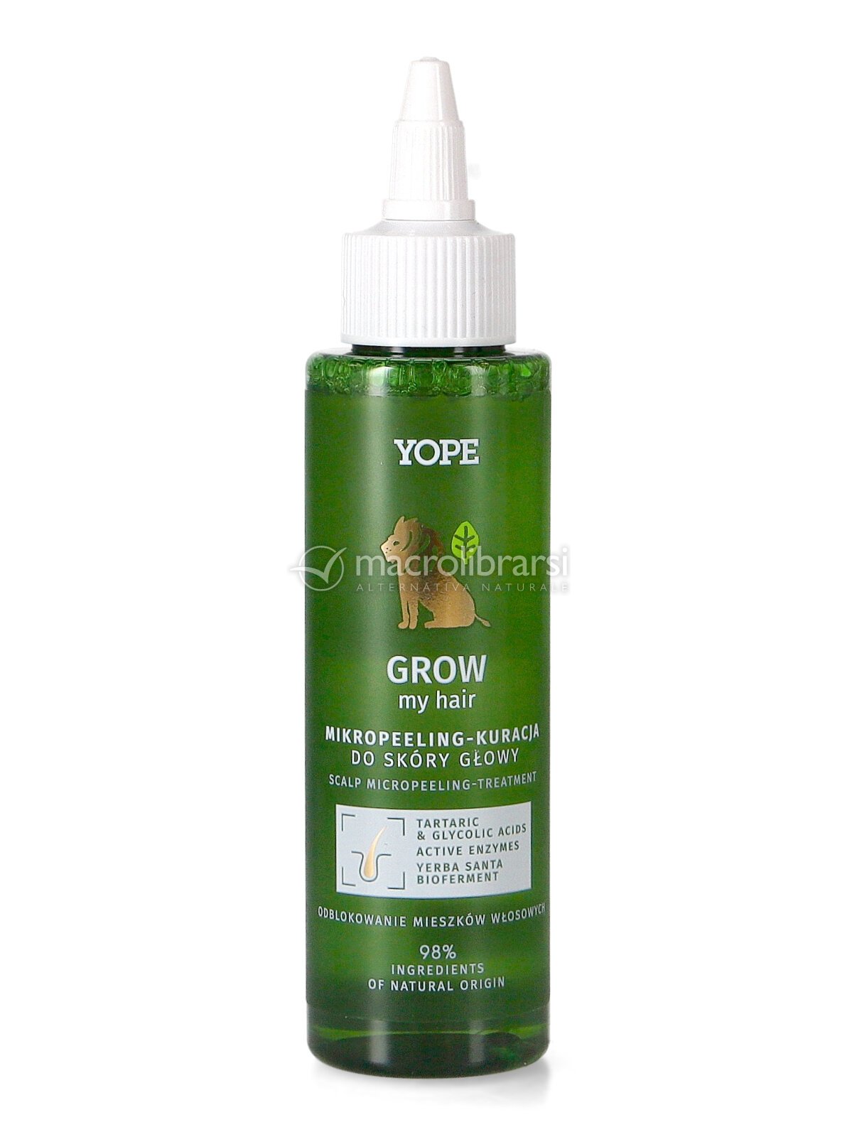 Il trattamento micropeeling GROW my hair di Yope è un prodotto innovativo multi-azione per una purificazione efficace del cuoio capelluto.