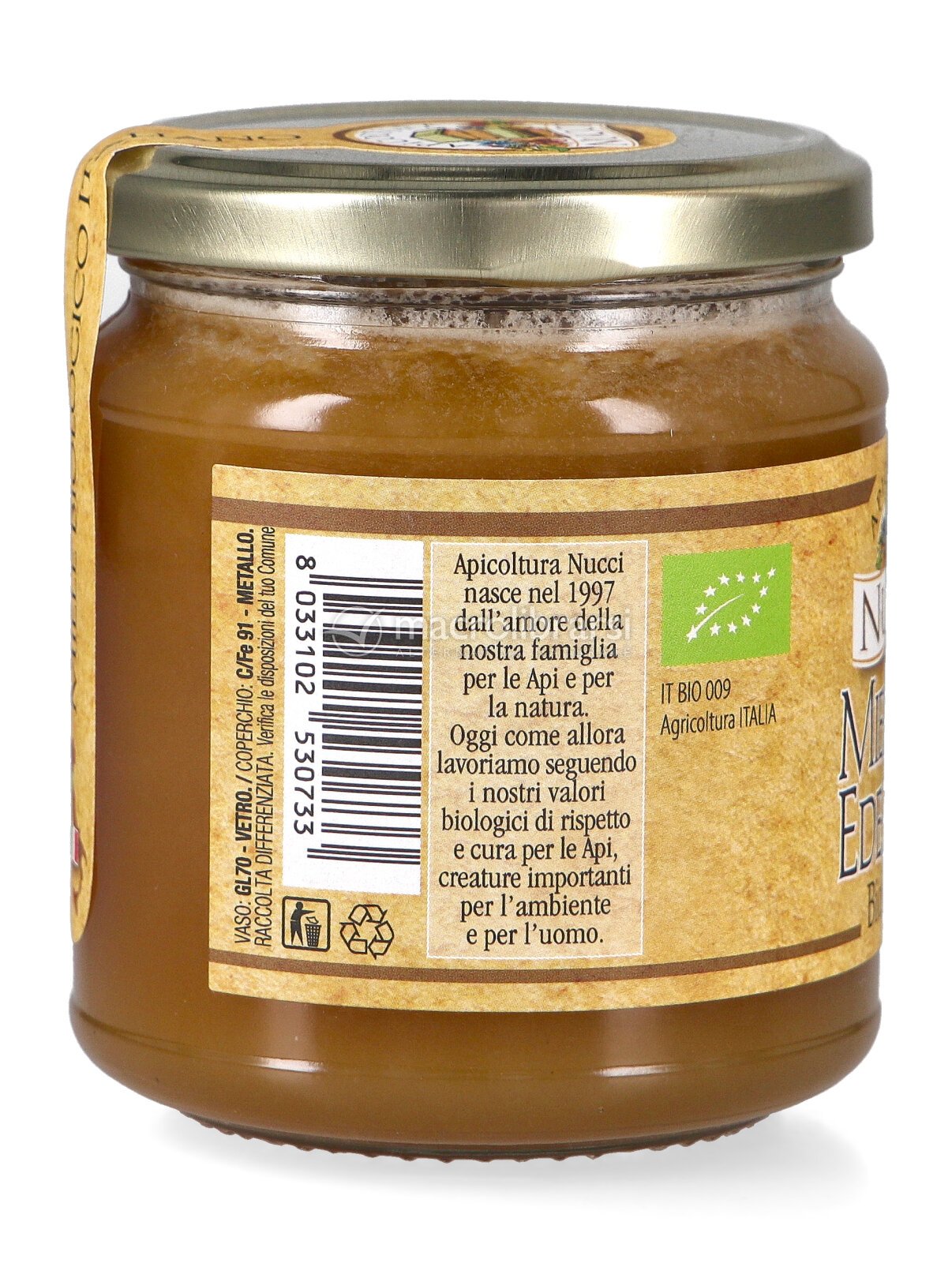 Il Miele di Edera biologico italiano dell’apicoltura Nucci viene raccolto nel mese di settembre, portando gli alveari in alta collina, dove le api bottinano sui fiori di edera. Un miele genuino e di qualità, frutto di una lavorazione attenta e rispettosa della natura.