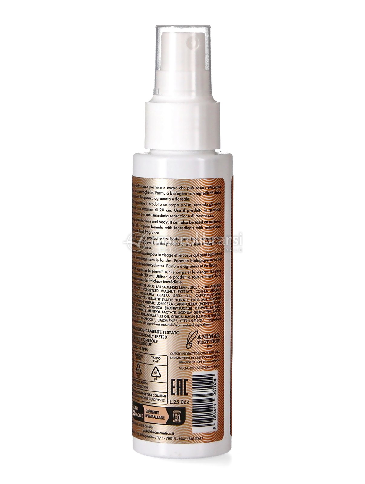 Vaporizza il prodotto su corpo e viso, tenendo gli occhi chiusi, mantenendo una distanza di 20 cm. Usa il prodotto in qualsiasi momento della giornata per un'immediata sensazione di freschezza.