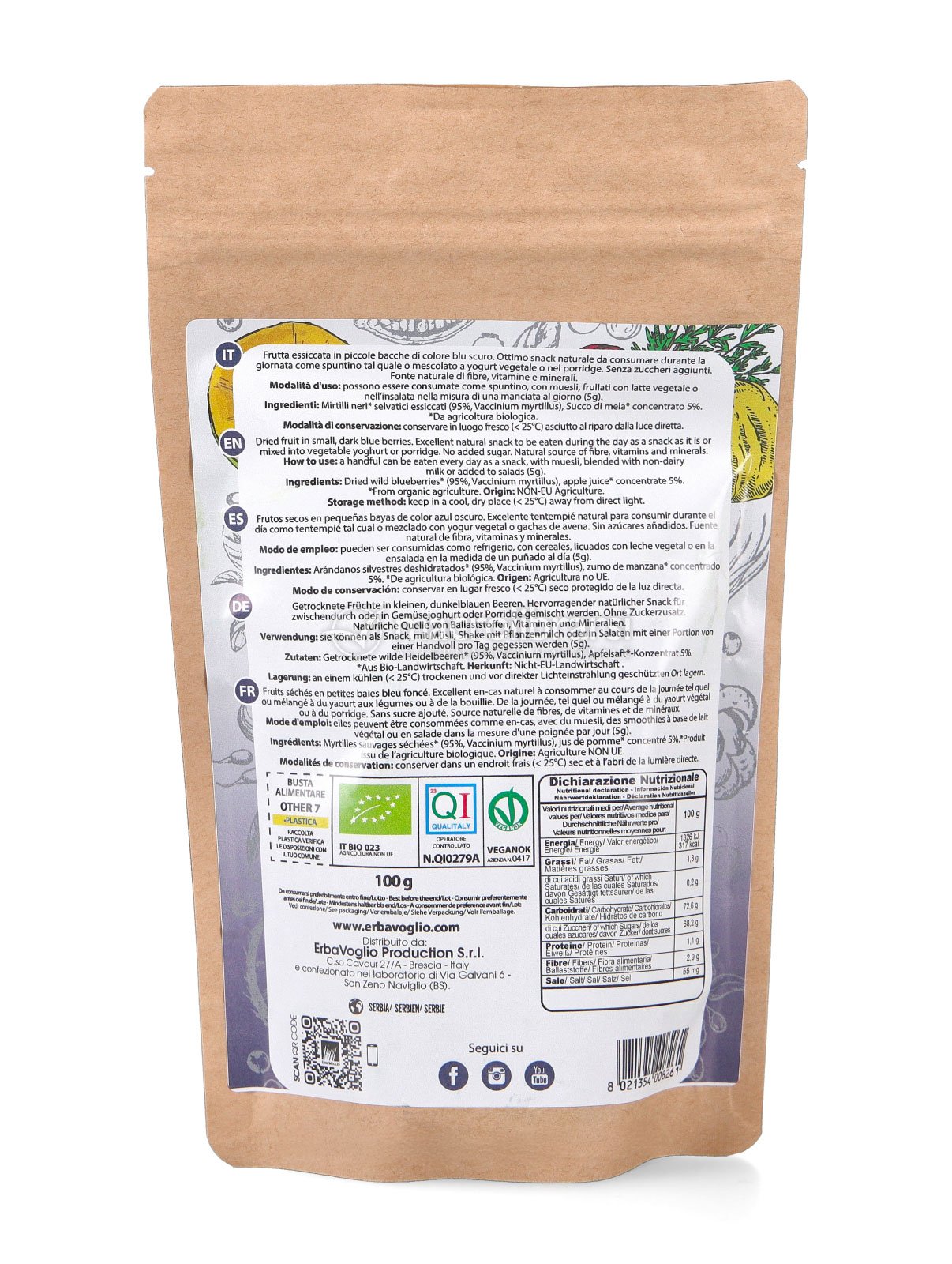 I mirtilli selvatici canadesi, provenienti da agricoltura biologica, vengono essiccati a basse temperature, senza aggiunta di conservanti chimici né solfiti.