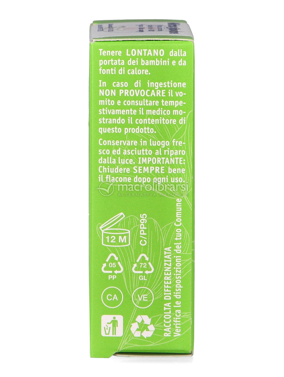 | Disclaimer | Non superare la dose giornaliera consigliata. Gli oli essenziali sono sostanze concentrate e non vanno usati puri ma diluiti in un olio vegetale. Evitare il contatto con occhi e mucose. Tenere fuori dalla portata dei bambini al di sotto dei tre anni. Per l’utilizzo in gravidanza e nei bambini o comunque per periodi prolungati si consiglia di sentire il parere del medico. Conservare in luogo asciutto e lontano da fonti di calore. Richiudere la confezione dopo l'uso. Macrolibrarsi ricorda l'importanza di seguire uno stile di vita sano e un'alimentazione variata ed equilibrata. |