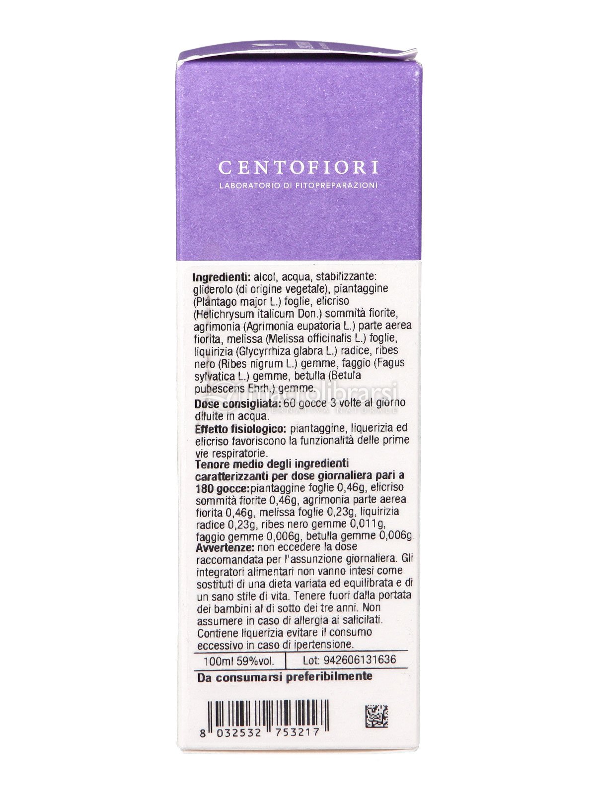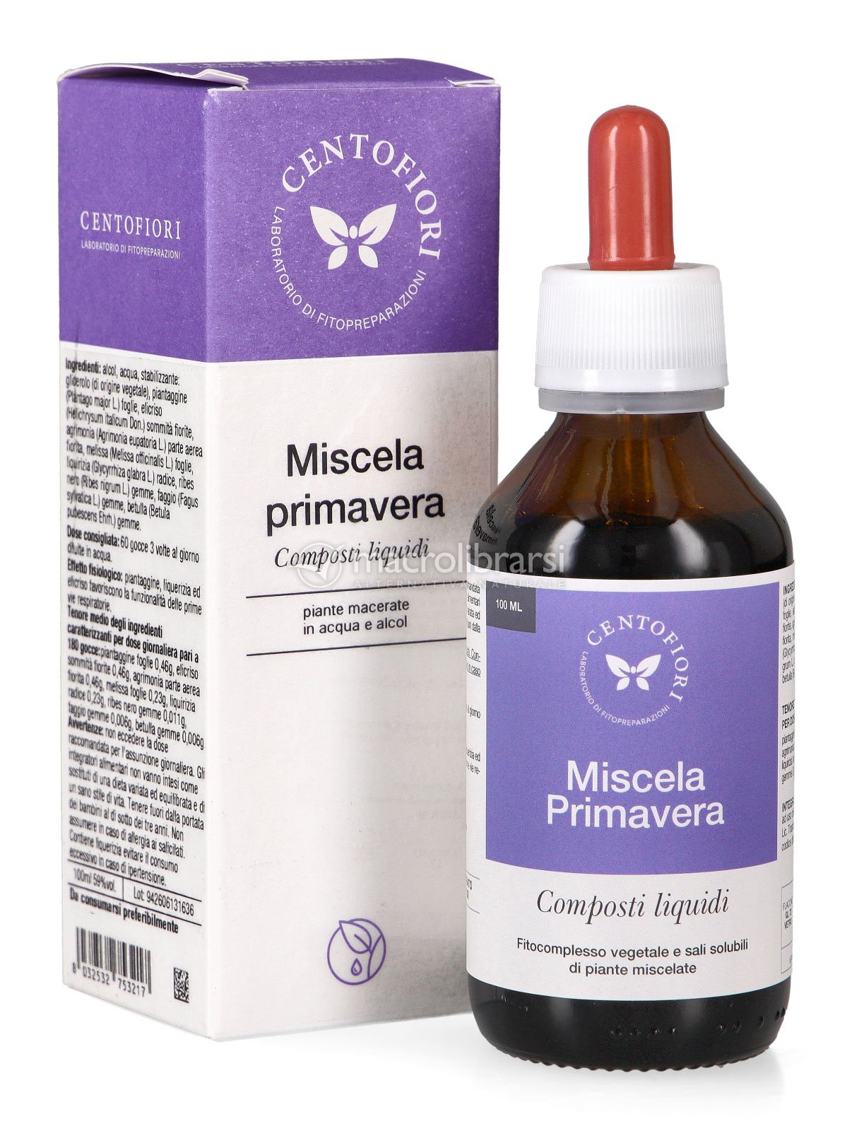 Miscela Primavera di Centofiori è una miscela di soluzioni idroalcoliche studiata per sostenere il sistema respiratorio. Contiene estratti di: