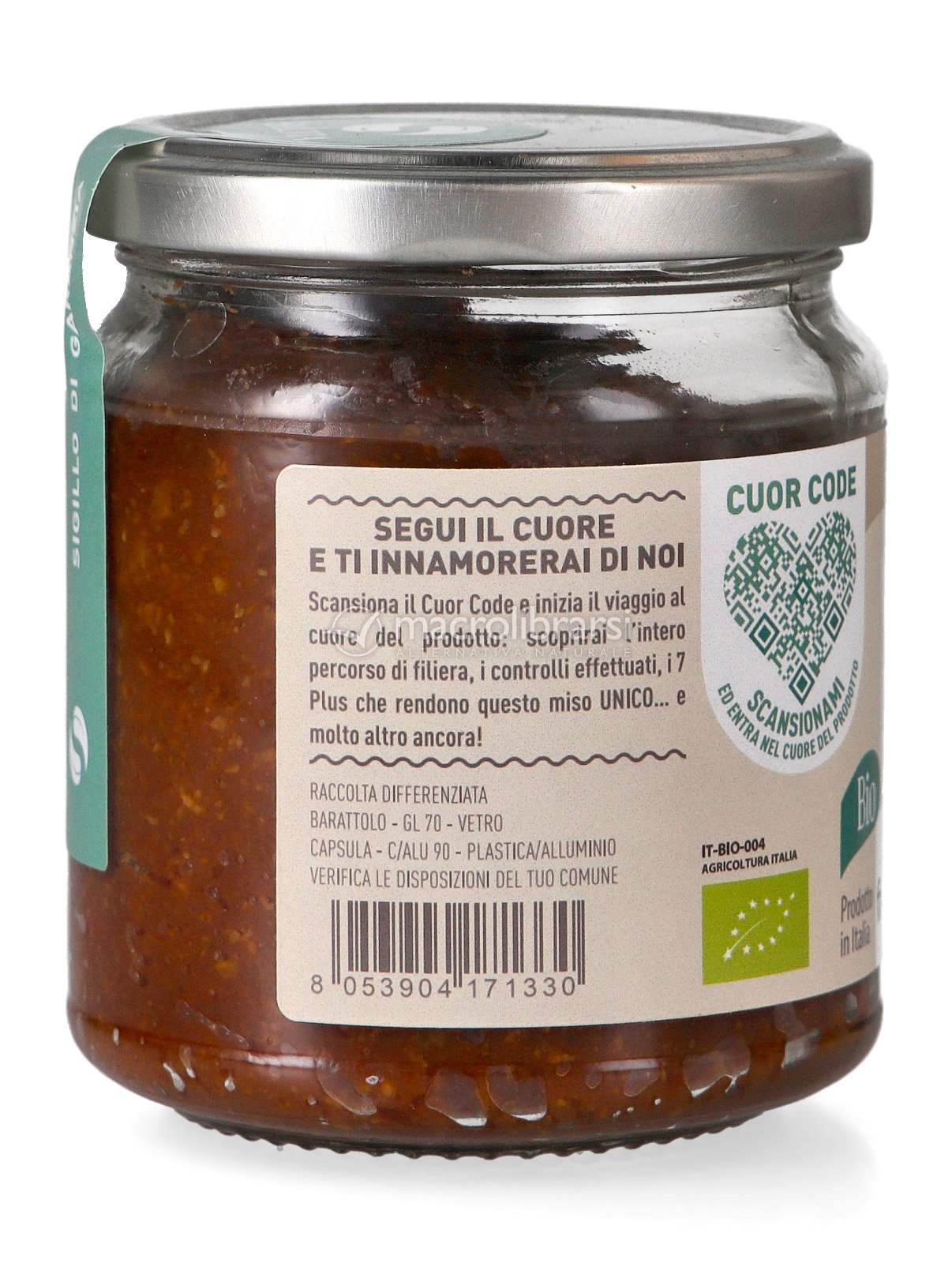 La consistenza è cremosa, il colore varia con la maturazione; al palato risulta equilibrato, con note rotonde e un finale pulito. È l’alleato quotidiano per dare profondità a zuppe, vellutate, cereali e verdure: basta ½–1 cucchiaino sciolto a fine cottura, senza far bollire. Ottimo anche nelle marinature o spalmato su pane integrale con un filo d’olio per uno spuntino semplice ma saporito.