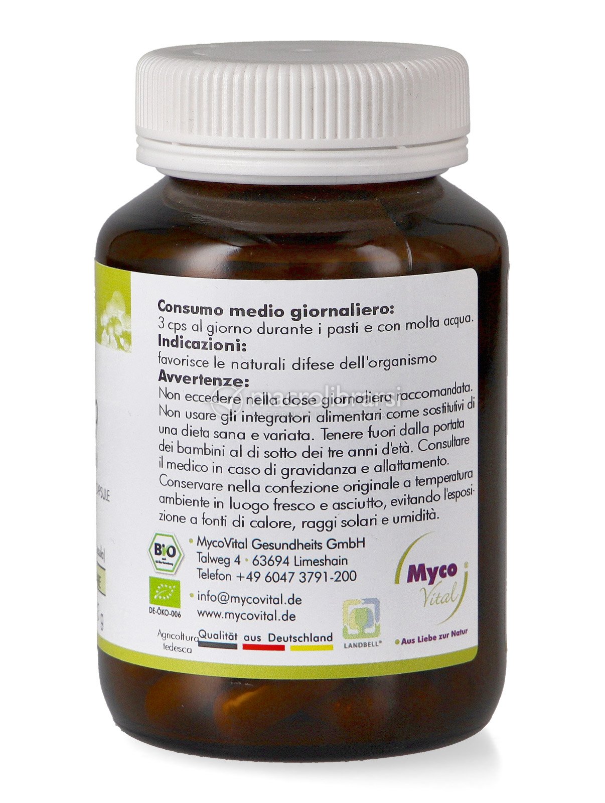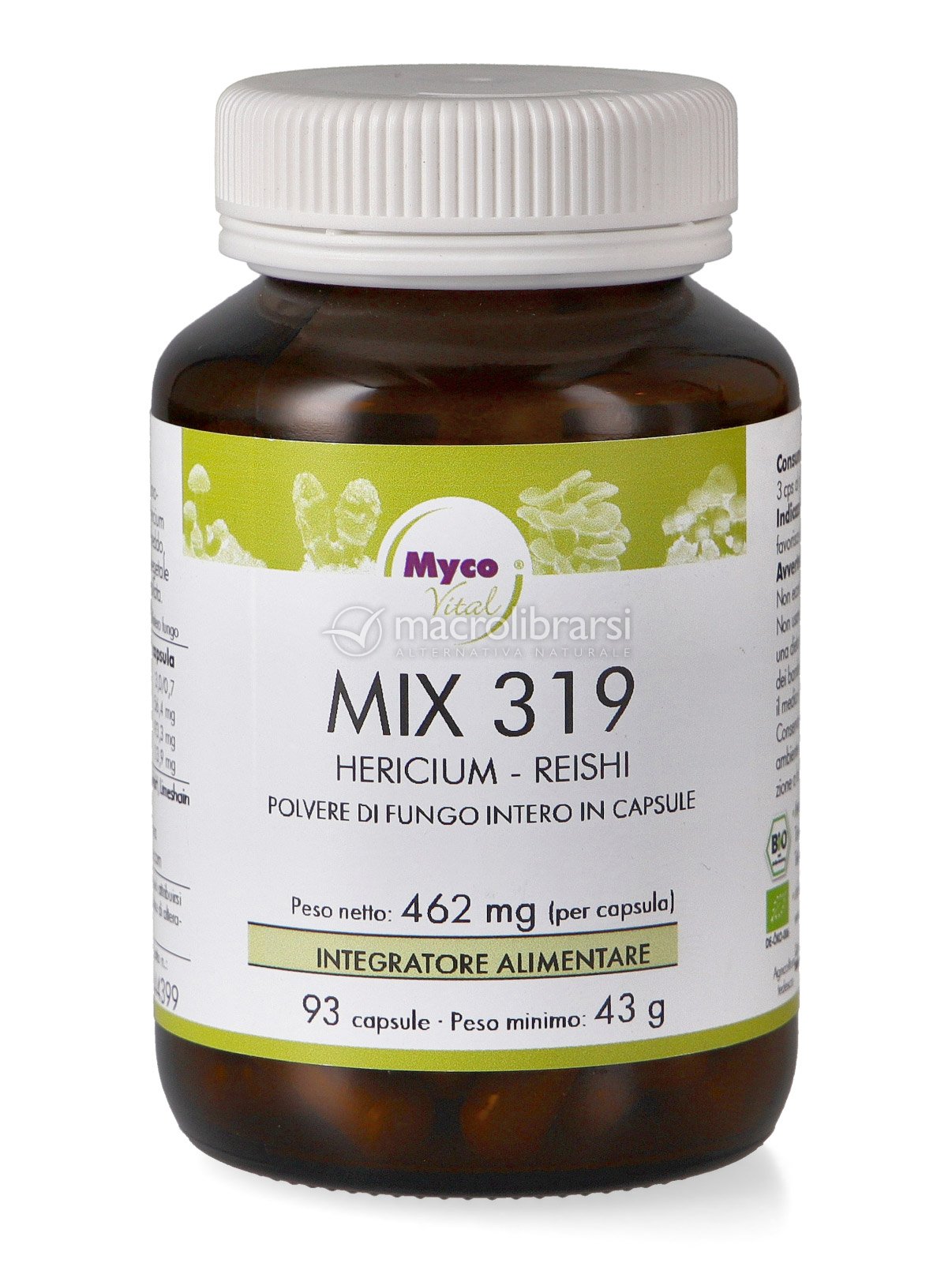 Mix 319 Hericium-Reichi di Myco Vital è un integratore in capsule contenente polvere di fungo intero. Le capsule contengono polvere dell'intero fungo, da agricoltura biologica, da produzione tedesca controllata.