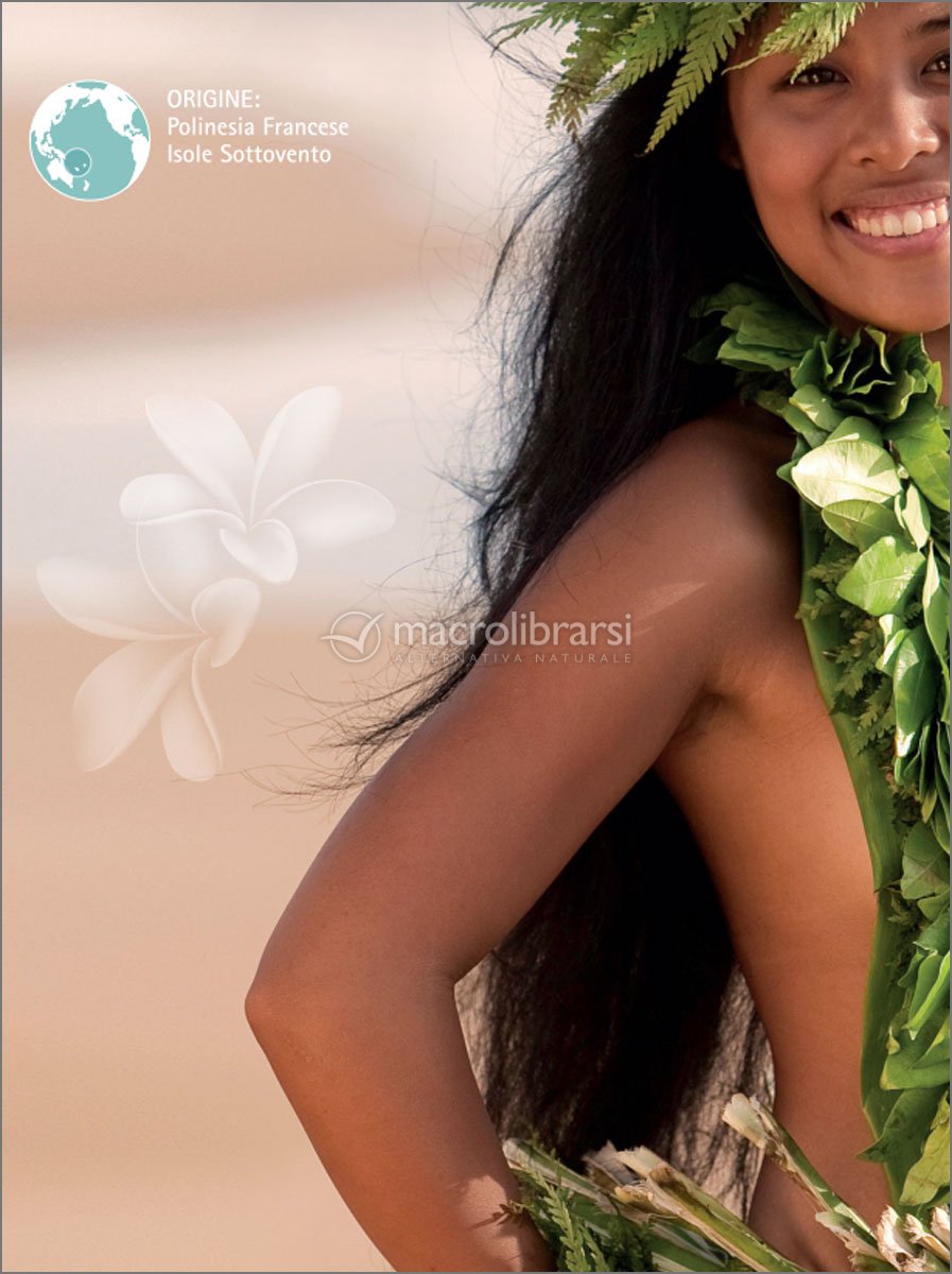 Il segreto di bellezza delle donne polinesiane, il Monoi è un olio delicato e naturale, ottenuto dalla macerazione dei fiori di Gardenia thaitensis in olio di Copra (polpa essicata del cocco), materie prime con caratteristiche uniche grazie alla particolarità dell’habitat polinesiano dal quale provengono.