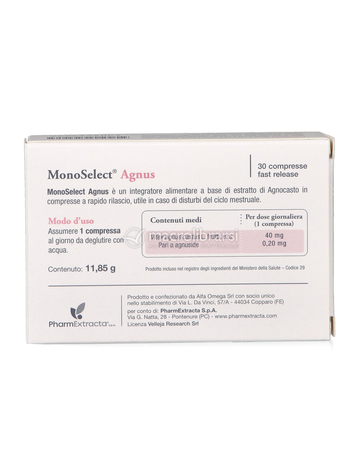 MonoSelect Agnus è un integratore alimentare in compresse a rapido rilascio, senza glutine e senza lattosio, a base di Agnocasto (Vitex agnus castus L.), utile in caso di disturbi del ciclo mestruale.